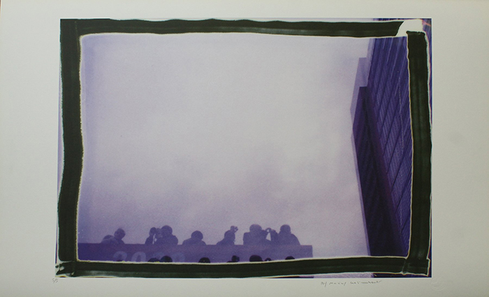 MAURIZIO GALIMBERTI, "Turisti", anni 2000, litografia su cartoncino, esemplare 1/5, cm 70x100, Al fronte: tiratura in basso a sinistra e firma e timbro a secco in basso a destra. Al verso: timbro Archivio Nordest. Opera con certificato di provenienza della Daliano Ribani Arte. Opera senza cornice.