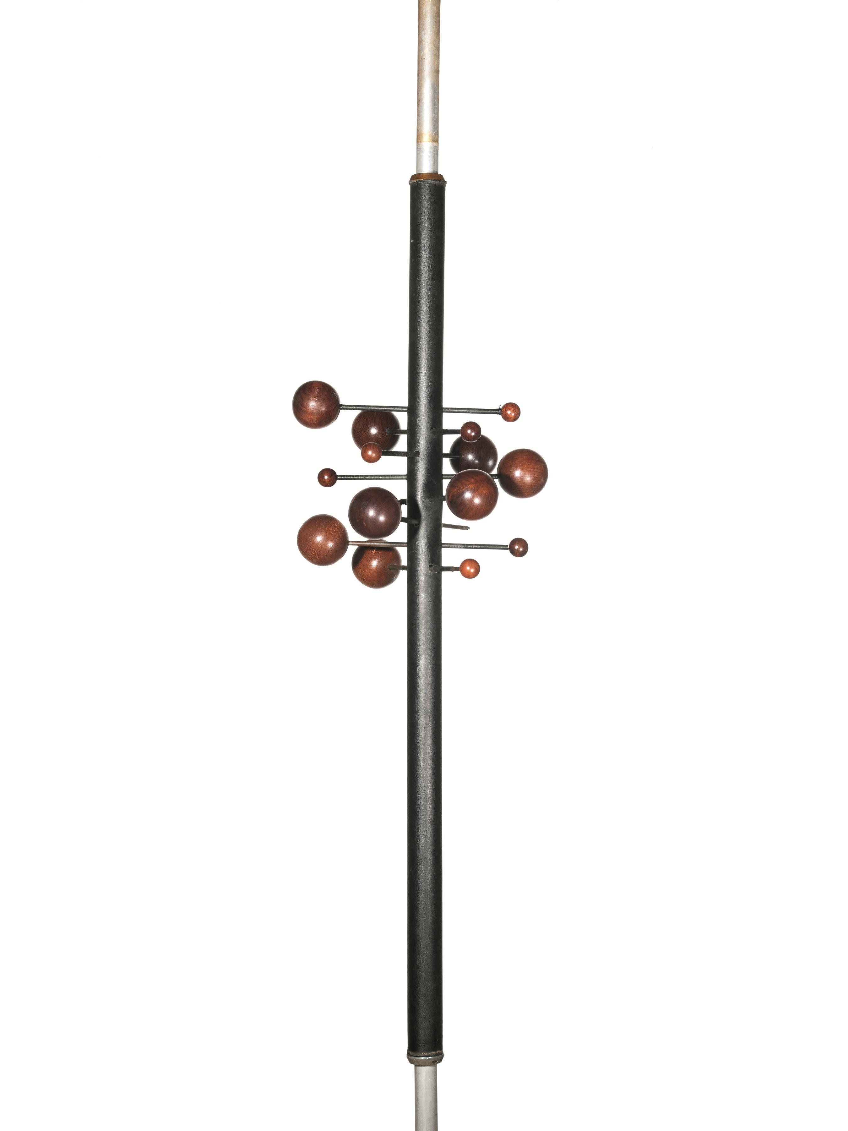 appendiabiti telescopico in acciaio laccato, skai, legno di palissandro e alluminio, alt. max cm 320, alt. min. 250, difetti e due pomelli mancanti