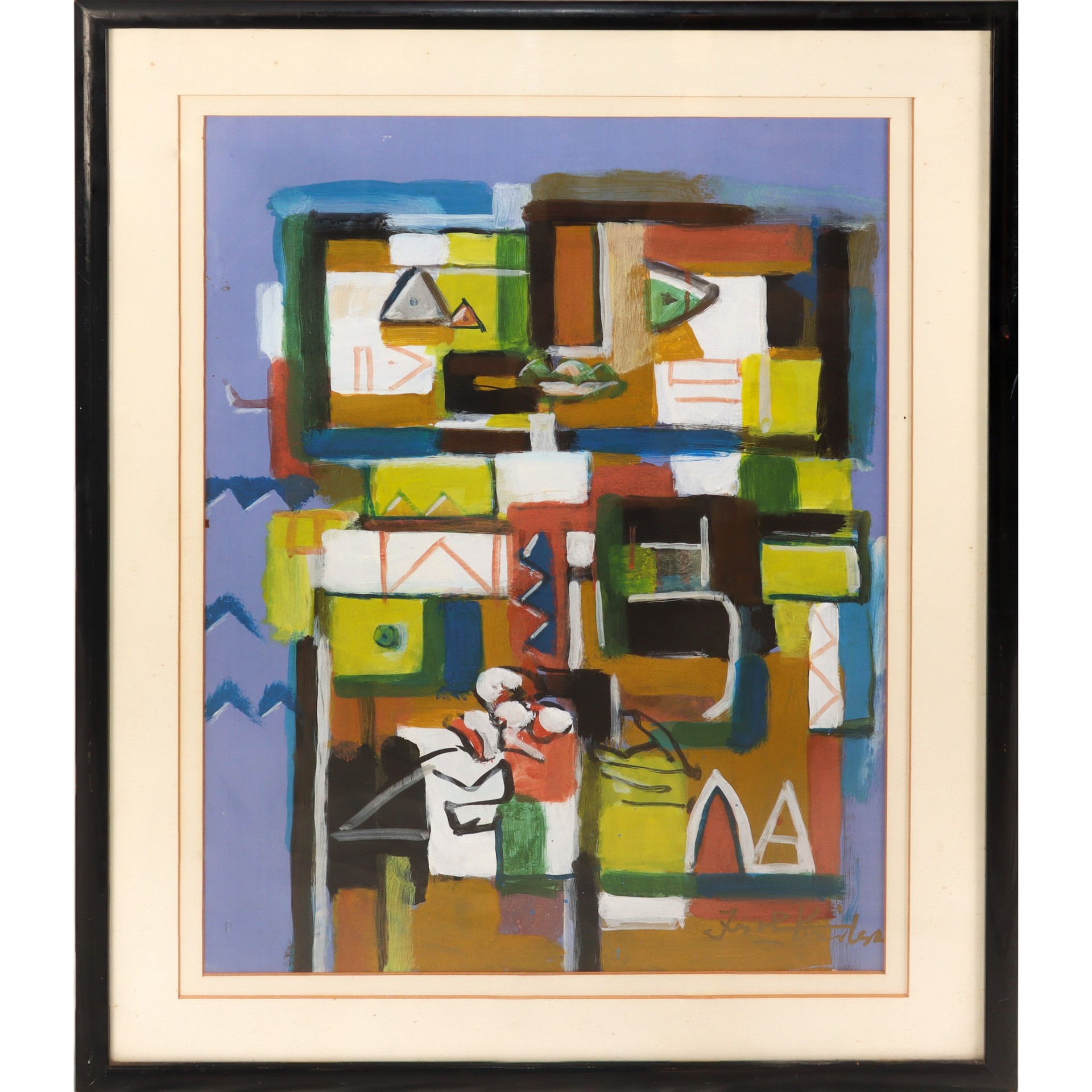 Ibrahim Shaban Likmetaj Kodra (Ishëm 1918 - Milano 2006) - Dono di un fiore h cm 66X47 in cornice h cm 79X62 Olio su carta applicata a tela Firmato in basso a destra. Firmato e titolato sul retro