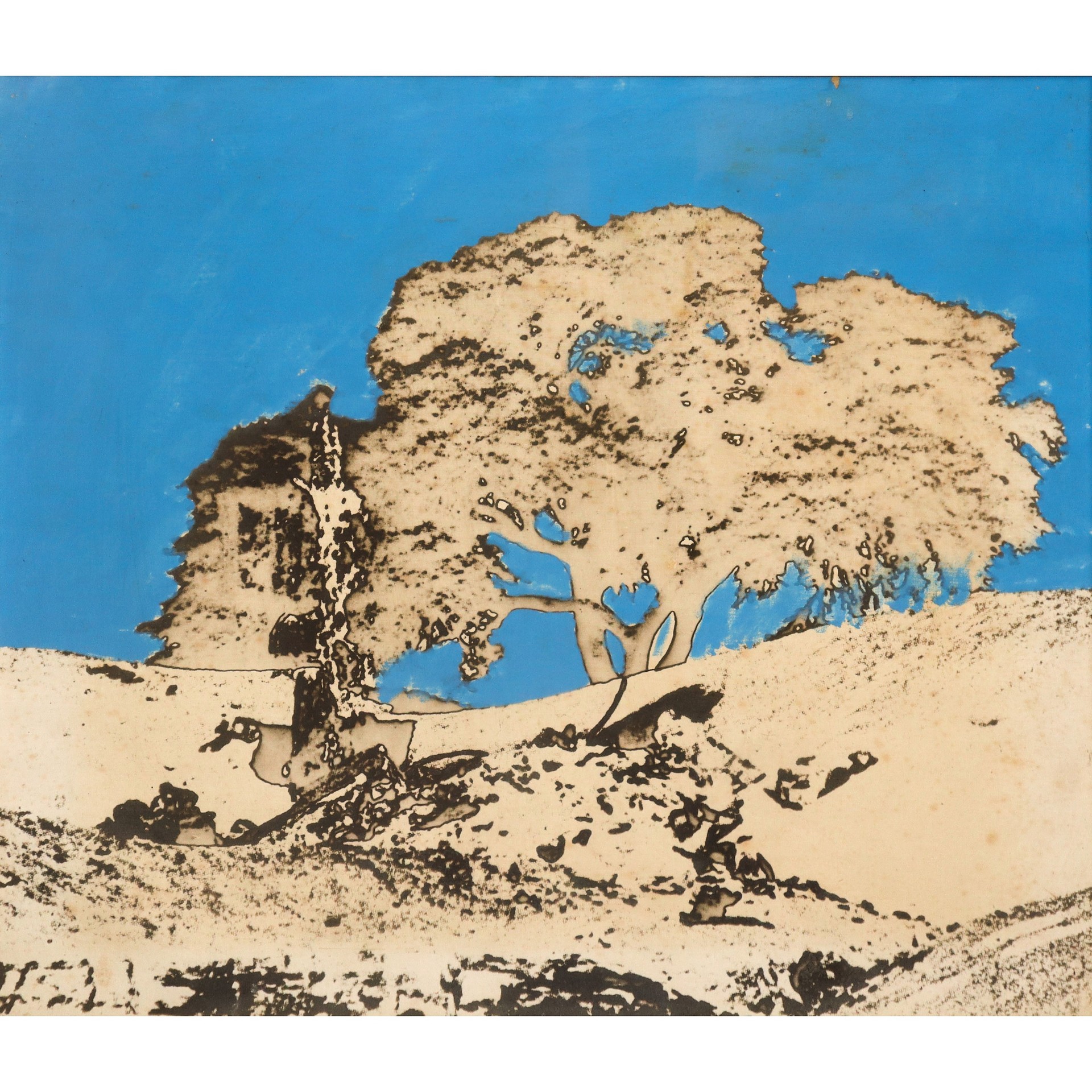 Tano Festa (Roma 2 novembre 1938 - Roma 9 gennaio 1988) - Albero innevato, Rome 1978 h cm 55X60 in cornice h cm 68X73 Tempera su negativo fotografico emulsionato su tela Sul retro "Roma- Tano Festa 78" firmato e datato. N. D'archivio B21160/2570 del 20 febbraio 2025.