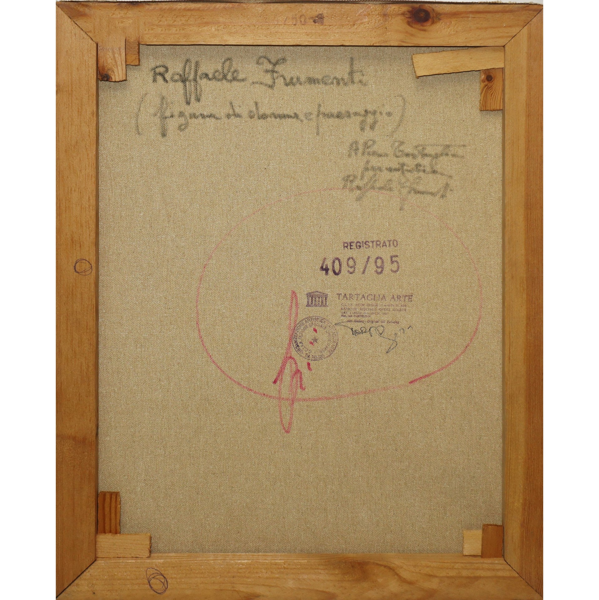 Raffaele Frumenti (Roma 01/09/1922 - Roma 2002) - Figura di donna e paesaggio H cm 40x30 Olio su tela Firmato al fronte in basso a destra. Al retro firmato, titolato e dedicato. Timbro Tartaglia Arte