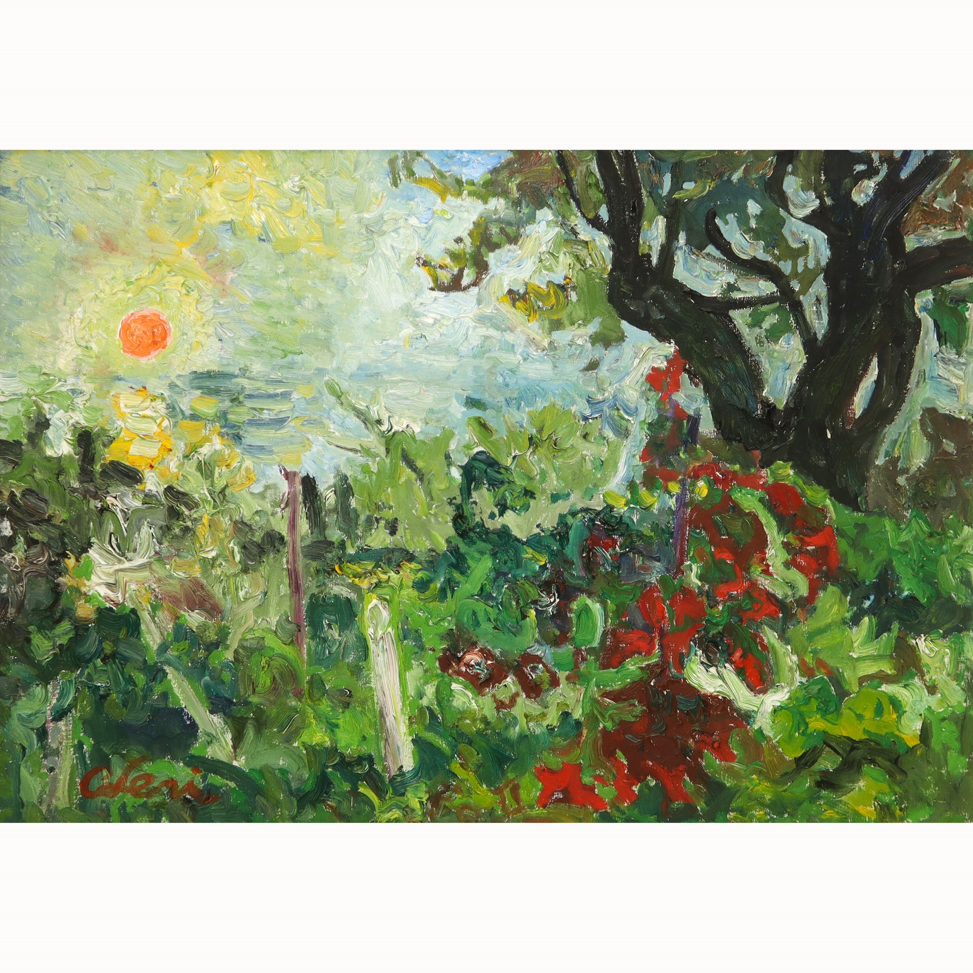 Carlo Levi (Torino 1902 - Roma 1975) - Paesaggio h cm 50X70 in cornice h cm 73X93 Firmato al retro
