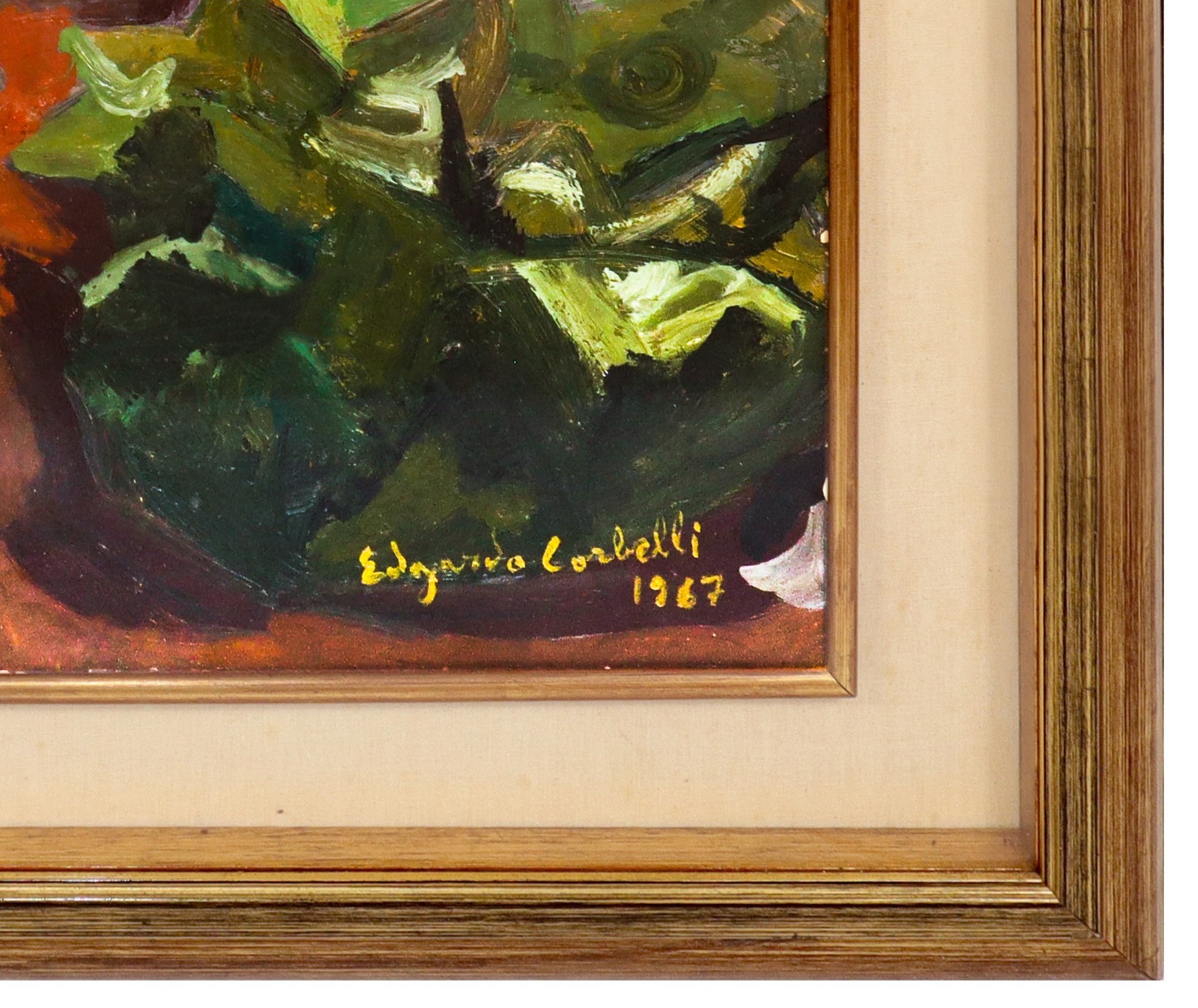 Edgardo Corbelli (Torino 1918 - 1989) - Giardino 60 x 50 cm in cornice 78 x 68 cm Olio su faesite Titolato e firmato al fronte, e al retro