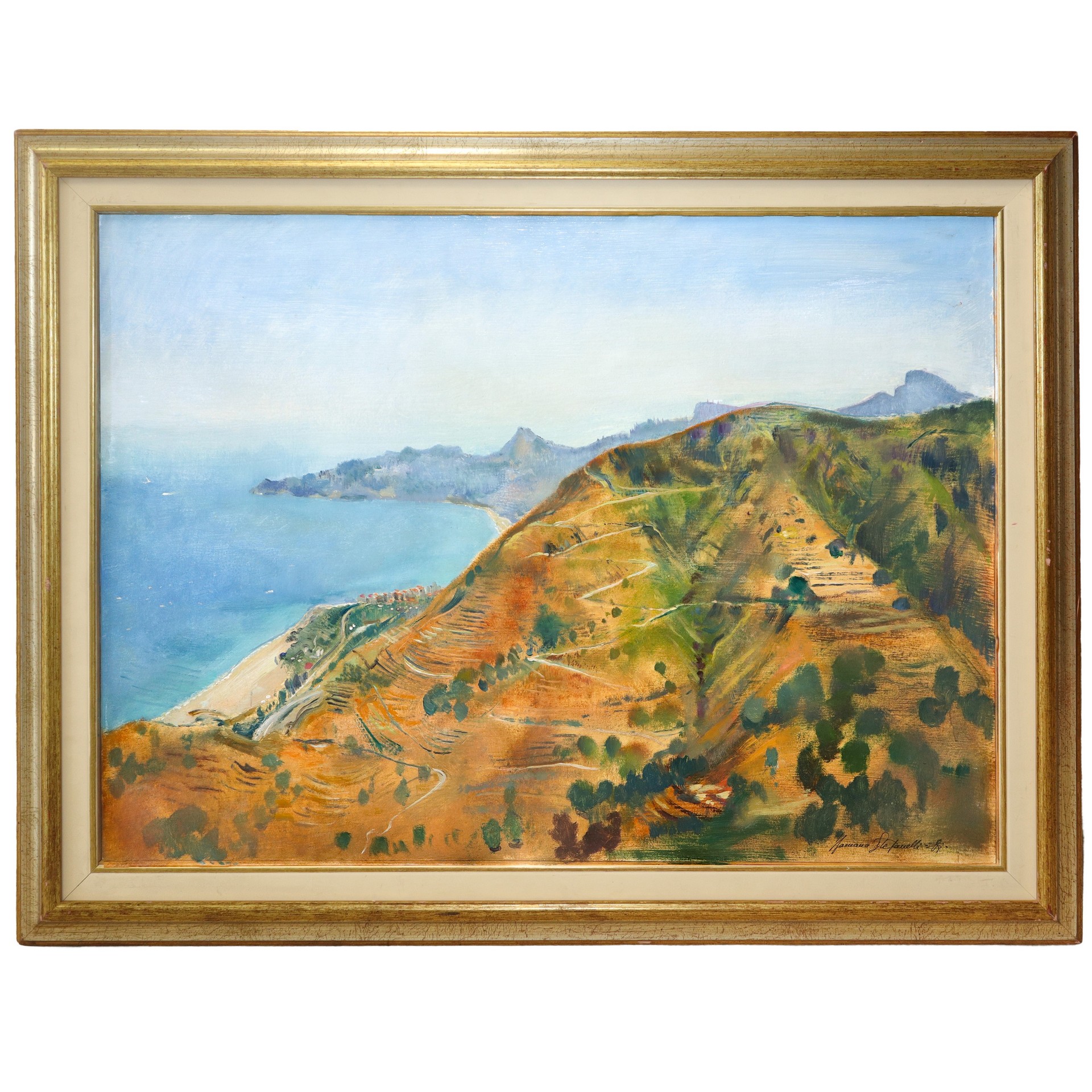Romano Stefanelli (Firenze 1931 - Migliarino 2016) - Capo Taormina cm 58x79 in cornice cm 72x93 olio su tavola