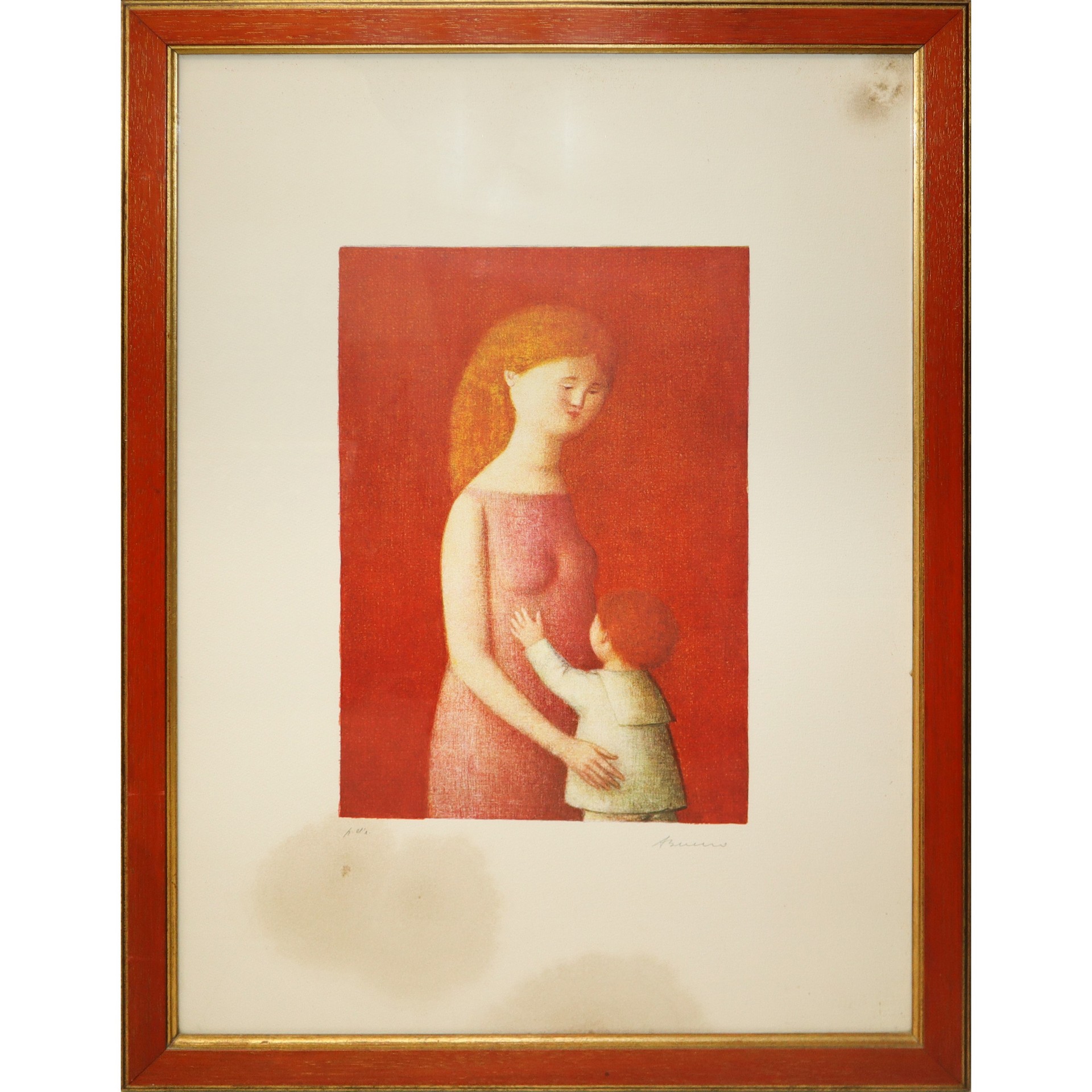 Antonio Bueno (berlino 1918 - Firenze 1984) - Mamma con bambino, 5/4/1985 h cm 70X50 in cornice h cm 76X56 Litografia a colori