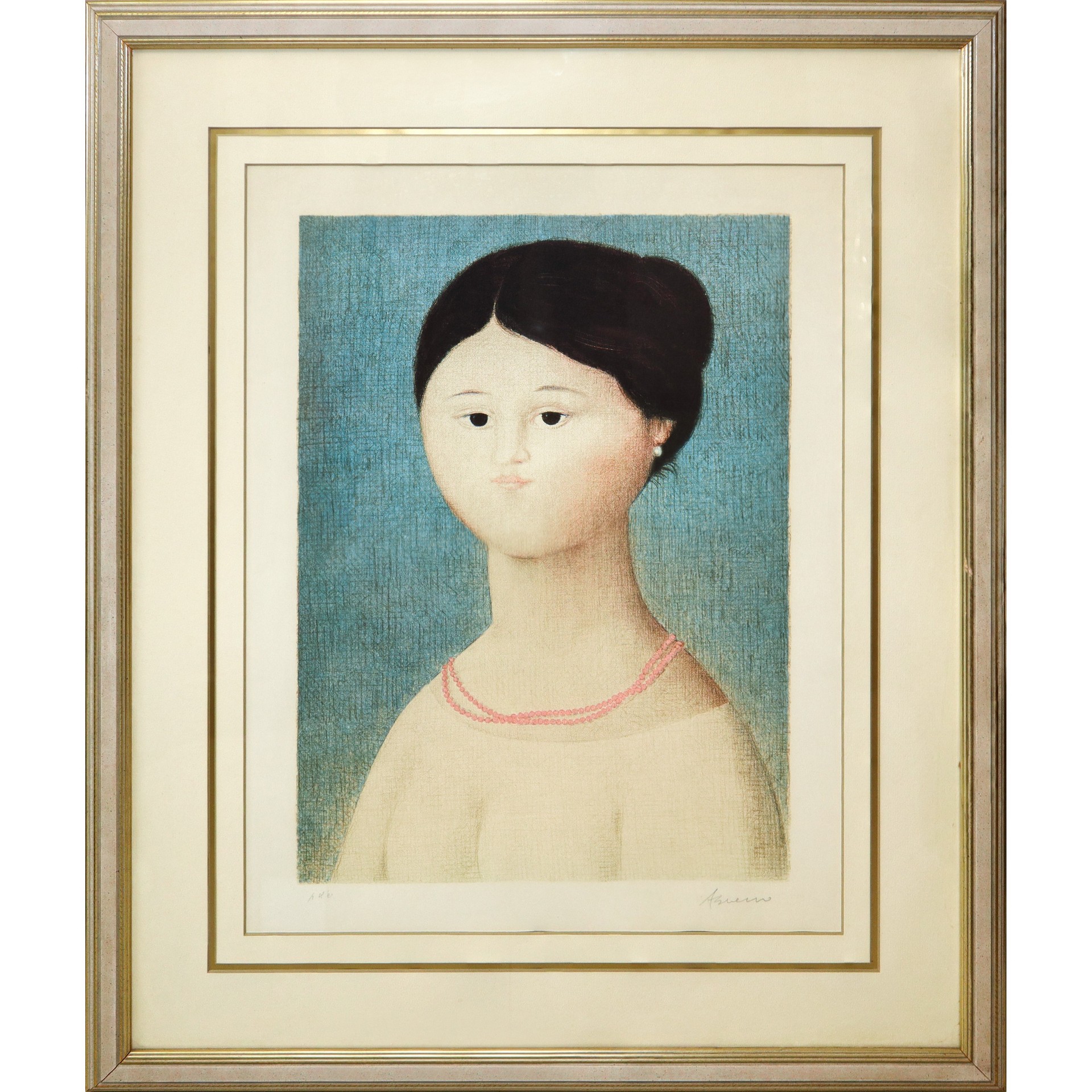 Antonio Bueno (berlino 1918 - Firenze 1984) - Donna con collana rosa h cm 65X50 in cornice h cm 88X75 Prova d'Autore litografia Firmato in basso a destra