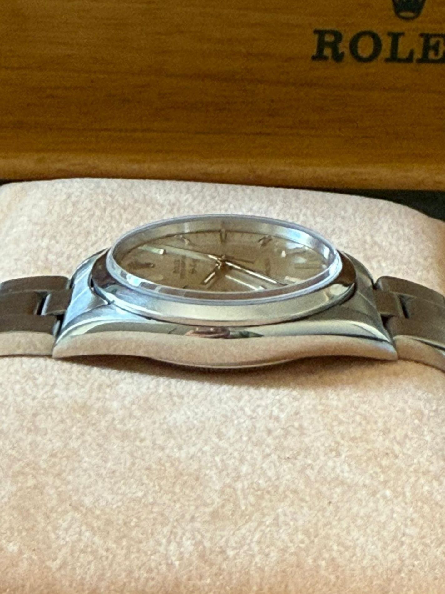 Marca Rolex Modello (Orologio) Air King Numero di referenza 14000 Carica Automatico Materiale della cassa Acciaio Materiale cinturino Acciaio Anno 1993 Condizione Ottimo (di seconda mano, segni di usura assenti o appena visibili) documenti originali, no box Carica Automatico Cassa Materiale della cassa Acciaio Diametro 34 mm Impermeabile 10 ATM Materiale lunetta Acciaio Vetro Vetro zaffiro Cinturino Materiale cinturino Acciaio Colore cinturino Acciaio Chiusura Déployante Materiale chiusura Acciaio - COMMISSIONE D’ASTA 25%