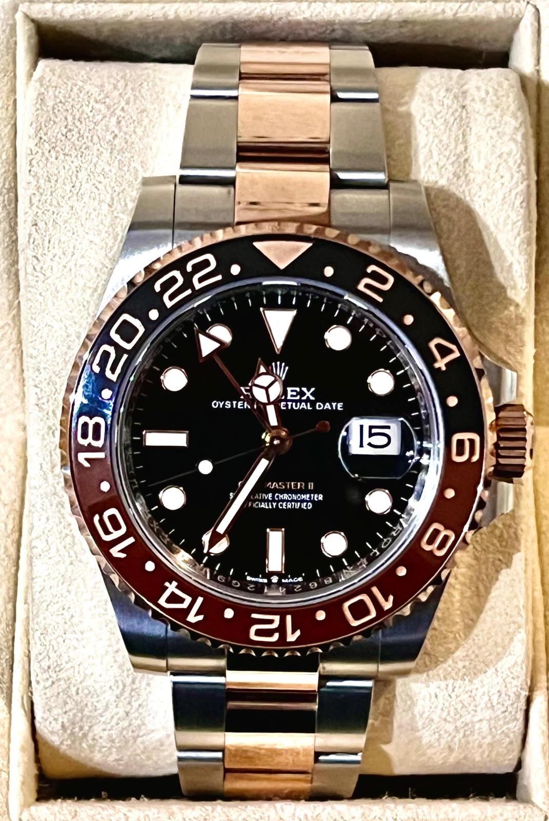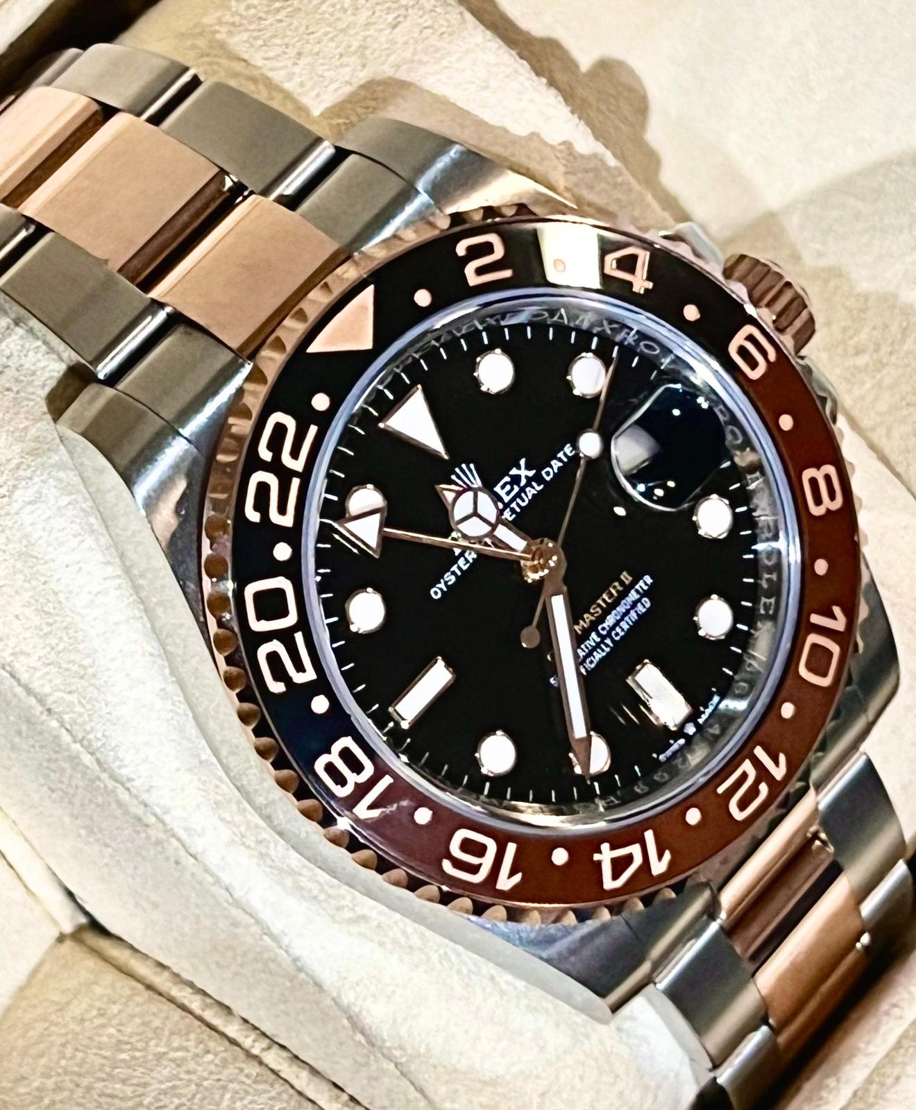 Marca Rolex Modello (Orologio) GMT-Master II Numero di referenza 126711CHNR Carica Automatico Materiale della cassa Oro/Acciaio Materiale cinturino Oro/acciaio Anno di produzione 2019 anno approssimativo Condizione Usato (Ottimo) L'articolo presenta segni di usura lievi, come ad esempio graffi leggeri, ma non percepibili al tatto. Corredo documenti originali, no box, la scatola è utilizzata solo per le foto ma non in vendita Carica Automatico Materiale della cassa Oro/Acciaio Diametro 40 mm Impermeabile 10 ATM Materiale lunetta Ceramica Vetro Vetro zaffiro Quadrante Nero Numeri sul quadrante Senza numeri Cinturino Materiale cinturino Oro/acciaio Colore cinturino Oro/acciaio Chiusura Déployante Materiale chiusura Oro/Acciaio - COMMISSIONE D’ASTA 25%