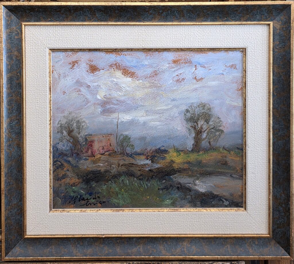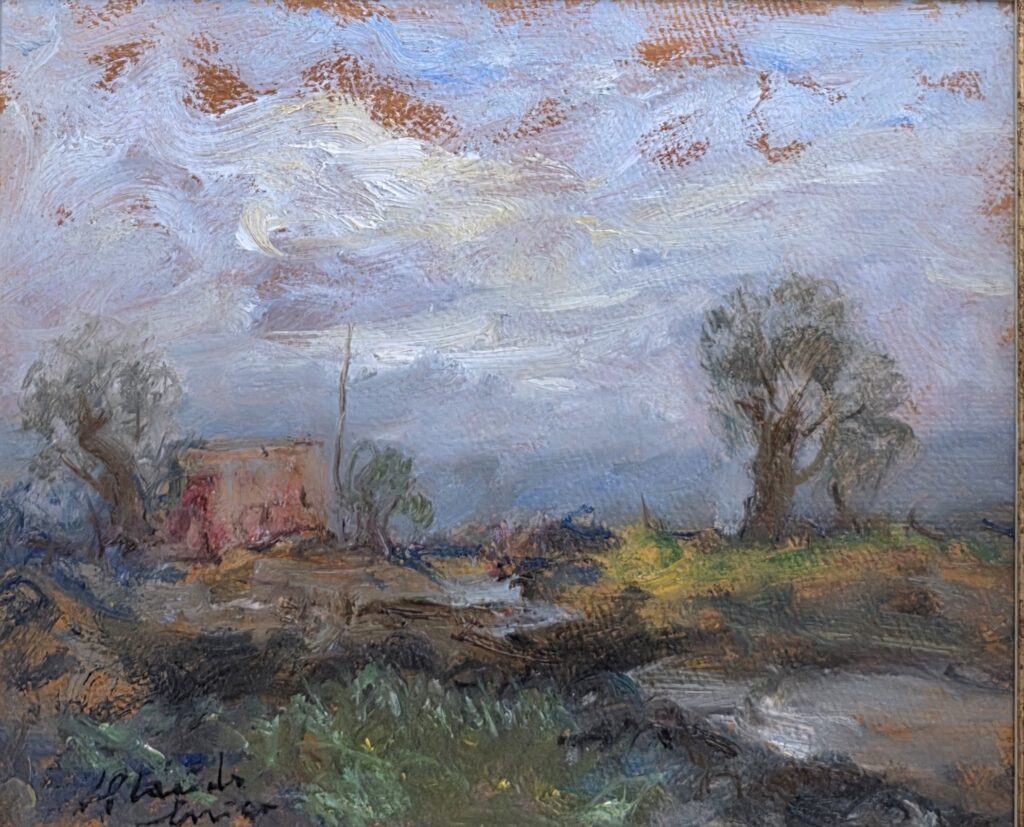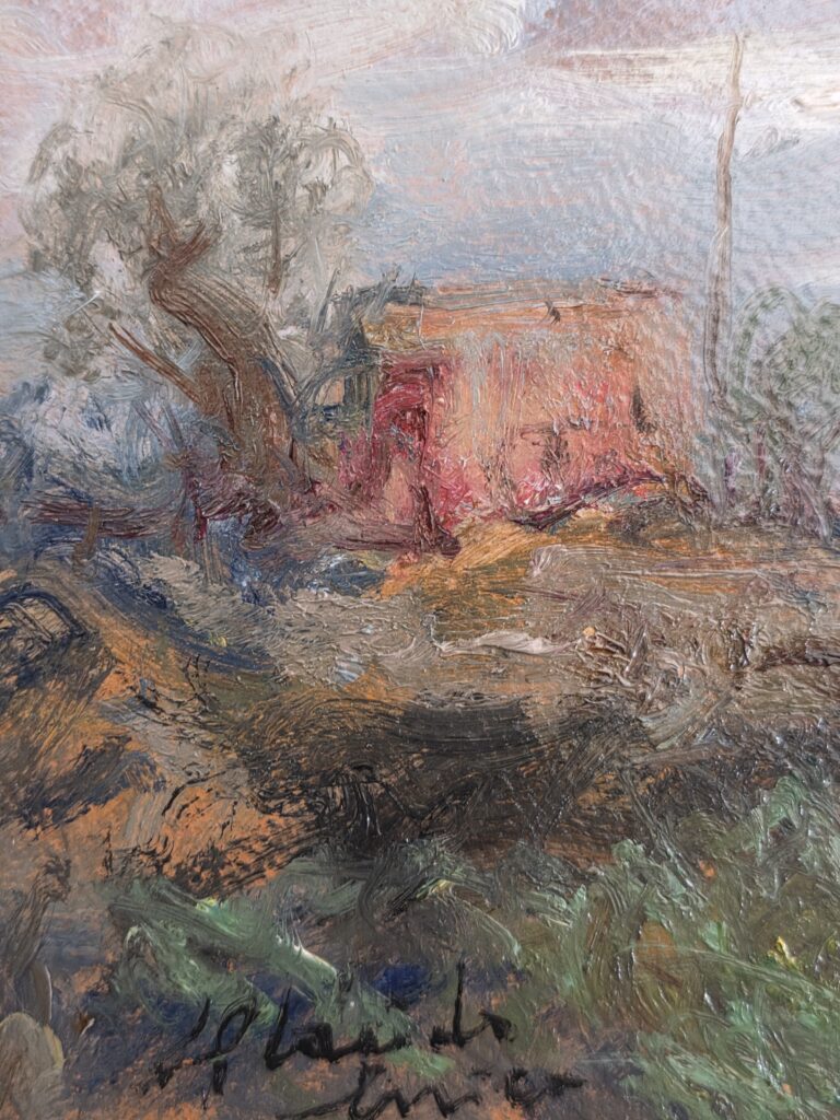 Placido Errico (1909-1983).Paesaggio.Olio su cartoncino.Cm.25 x 30