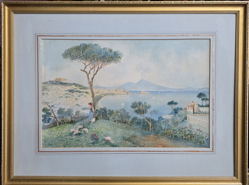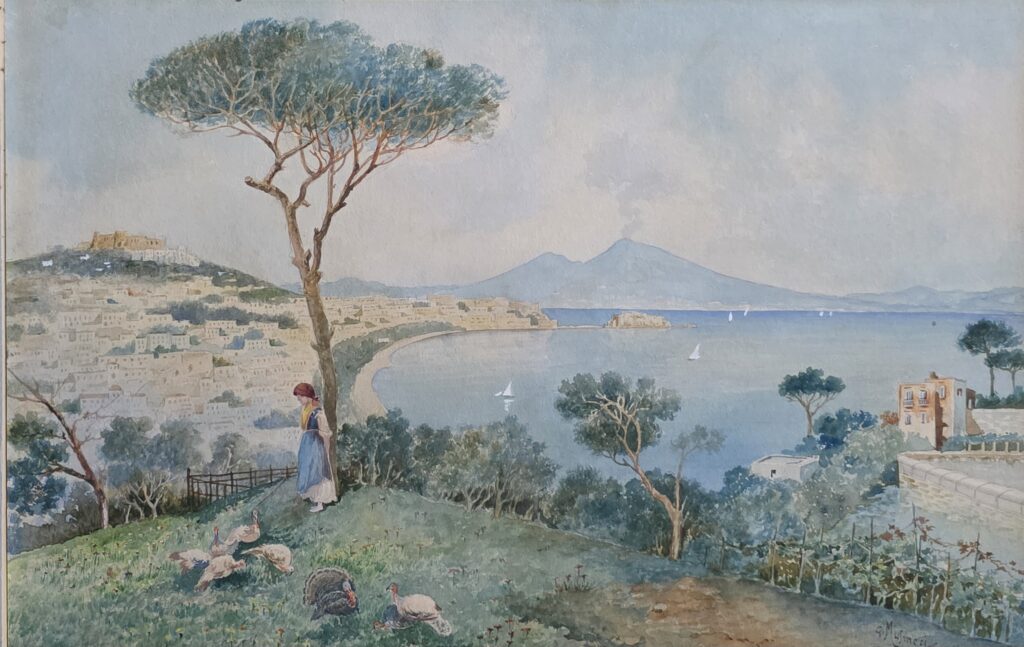 Giuseppe Musumeci(1902-?).Veduta di Napoli.Cm.28 x 41