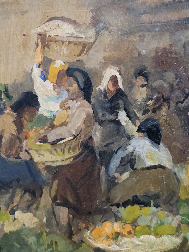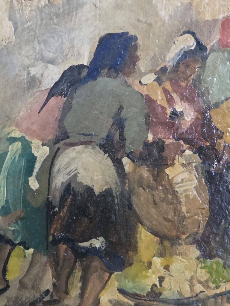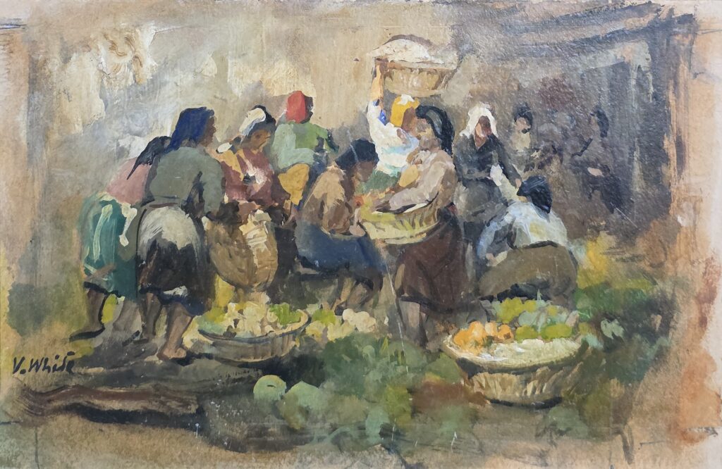 Valentino White(1909-1985).Mercato.Olio su cartoncino.Cm.18 x 27