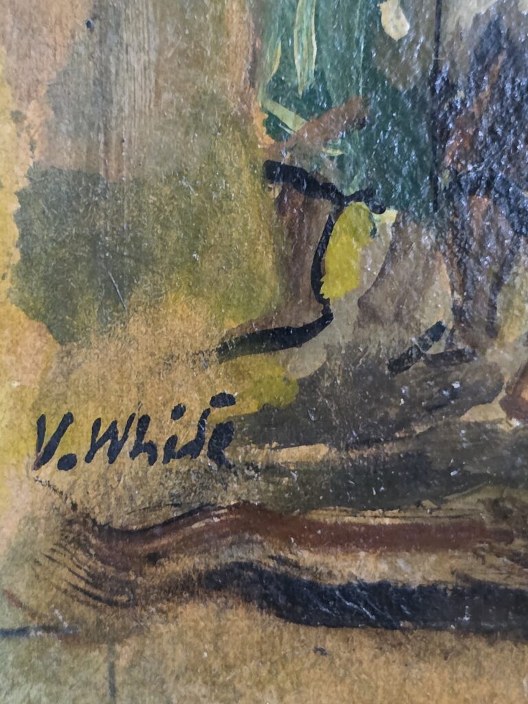 Valentino White(1909-1985).Mercato.Olio su cartoncino.Cm.18 x 27 Misure: cm.18x 27 Olio su cartoncino Firma in basso a sinistra V.White Mercato