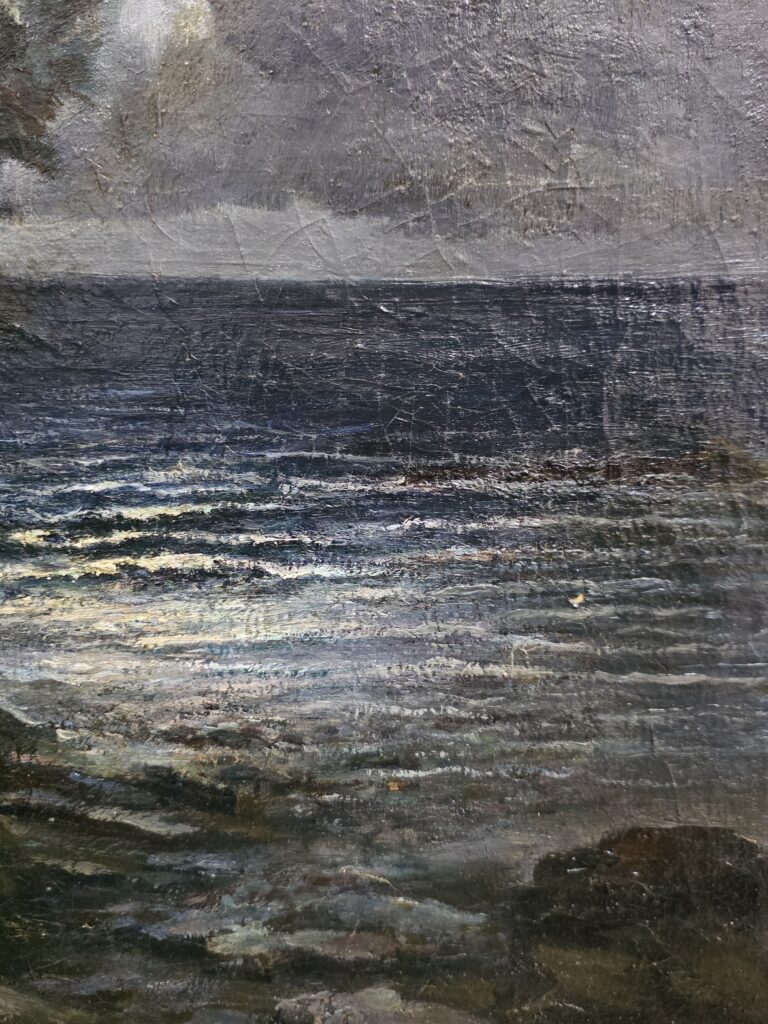 Andrea Figari (1858-1945).Olio su tela.Marina al chiar di luna.Cm.56 x 65 Misure: cm.56 x 65 senza cornice Misure: cm.71 x 81 con cornice Olio su tela Marina al chiar di luna Firma in basso a sinistra A.Figari