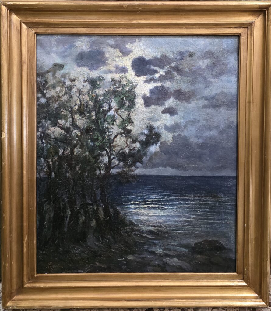 Andrea Figari (1858-1945).Olio su tela.Marina al chiar di luna.Cm.56 x 65