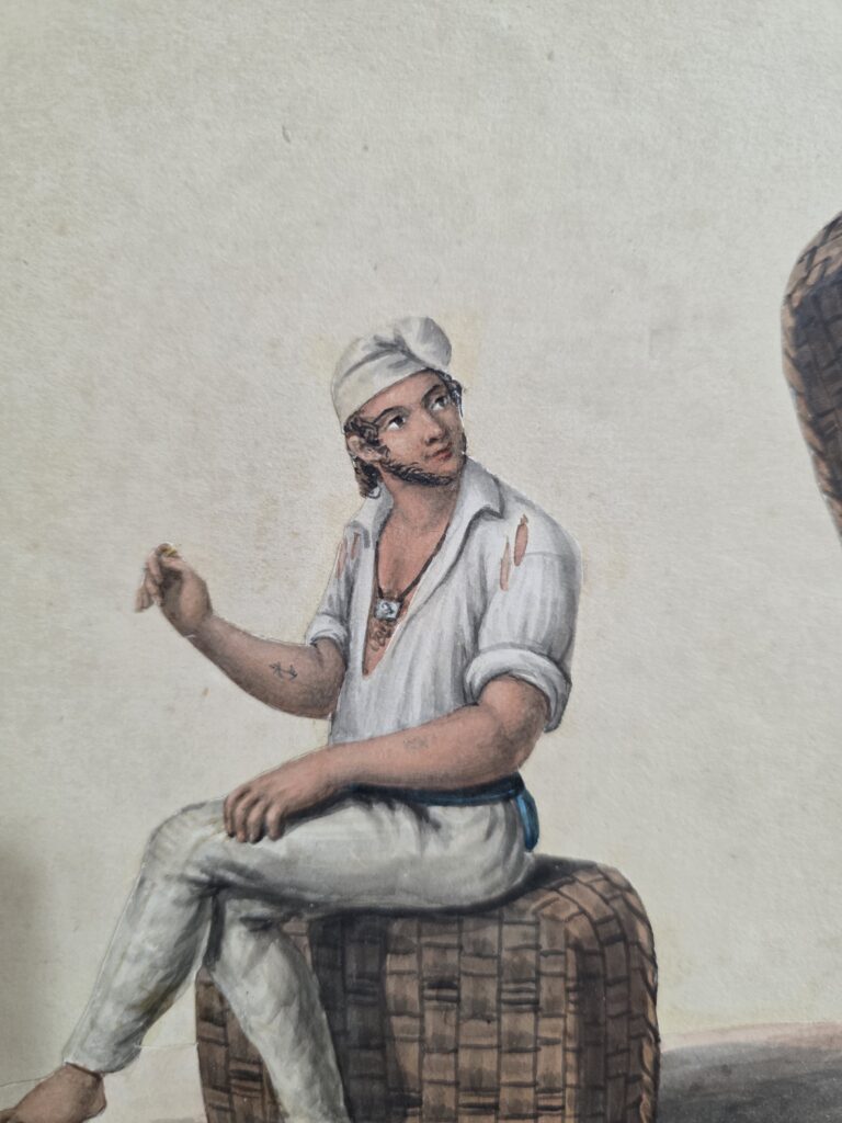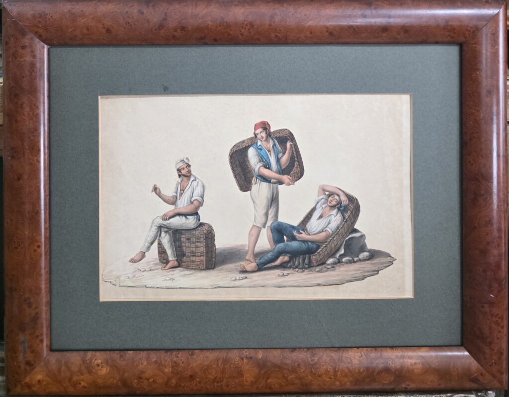 Artista napoletano,XIX secolo.Acquerello.Cm.24 x 35 Misure: cm.24 x 35 senza cornice Misure: cm.43 x 54 con cornice Artista napoletano, XIX secolo Acquerello su carta Lazzari napoletani