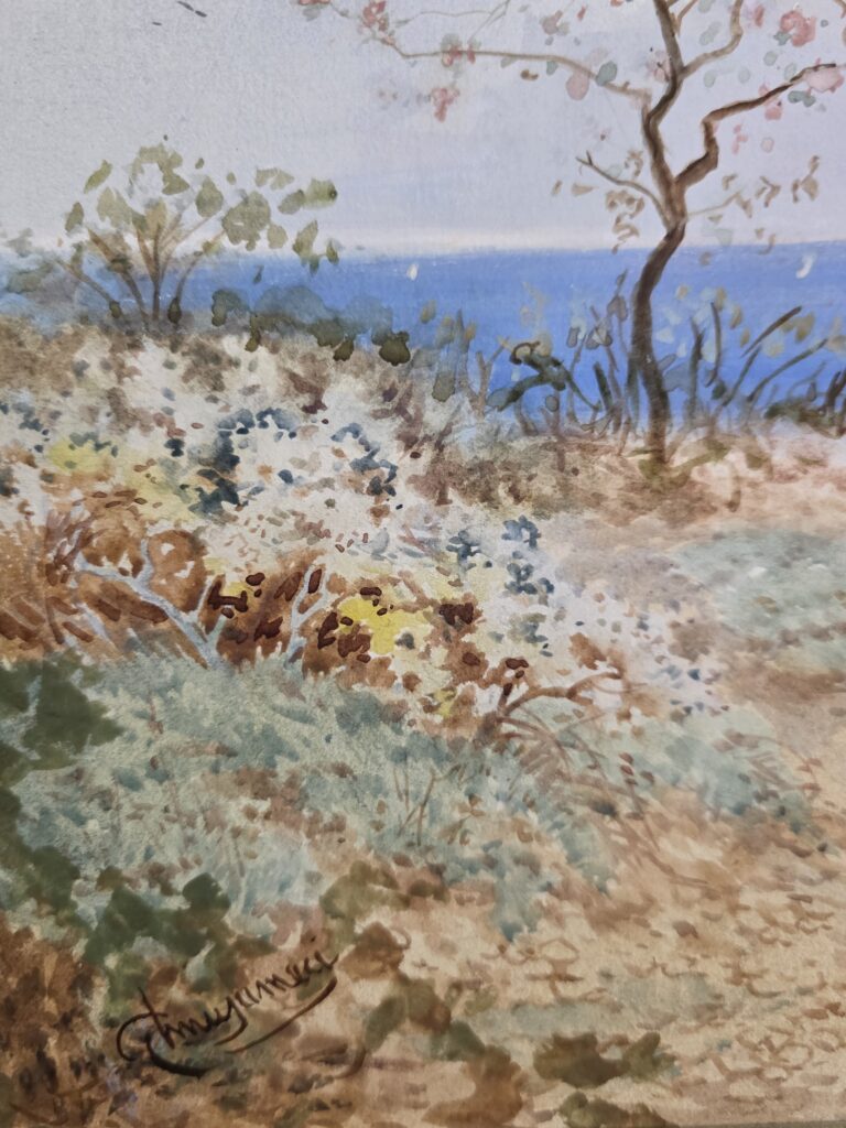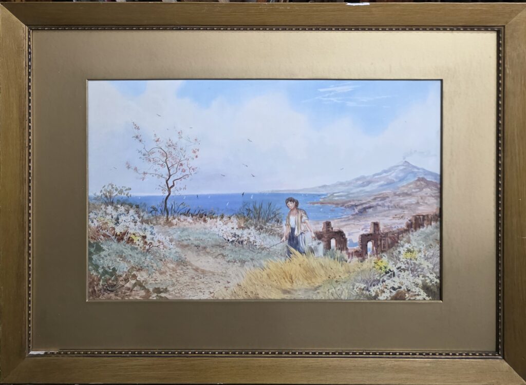 Giuseppe Musumeci(1902-?).Paesaggio con pastorella.Acquerello.Cm.31 x 47 Misure: cm.31 x 47 senza cornice Misure: cm.48 x 66 con cornice Acquerello Paesaggio con pastorella Firma in basso a sinistra G.Musumeci