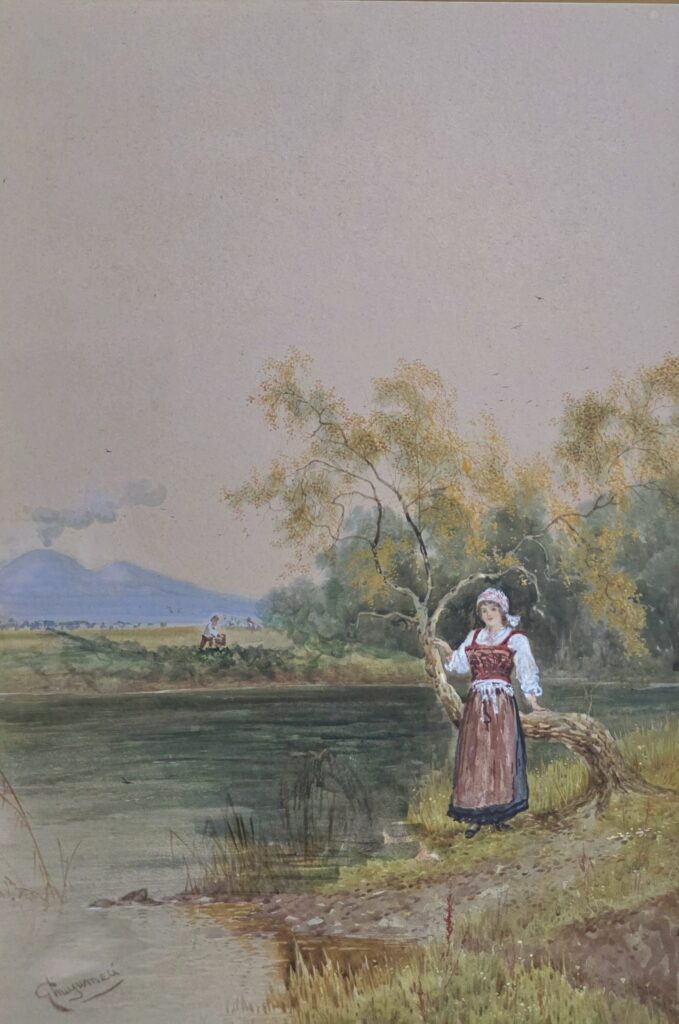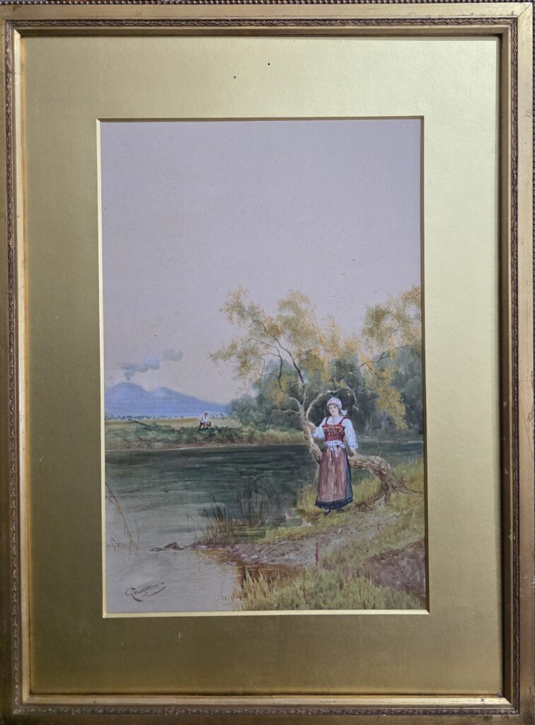 Giuseppe Musumeci(1902-?)Contadina nei pressi di Napoli Misure: cm.36 x 50 senza cornice Misure: cm.50 x 67 con cornice Acquerello su carta Contadina nei pressi di Napoli