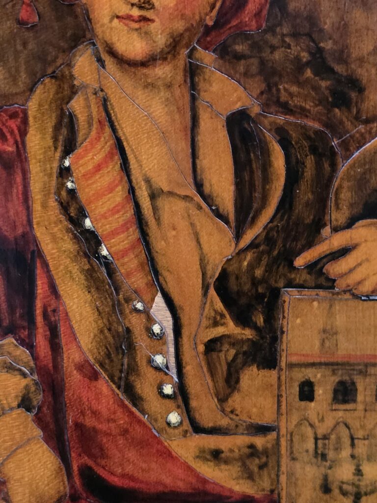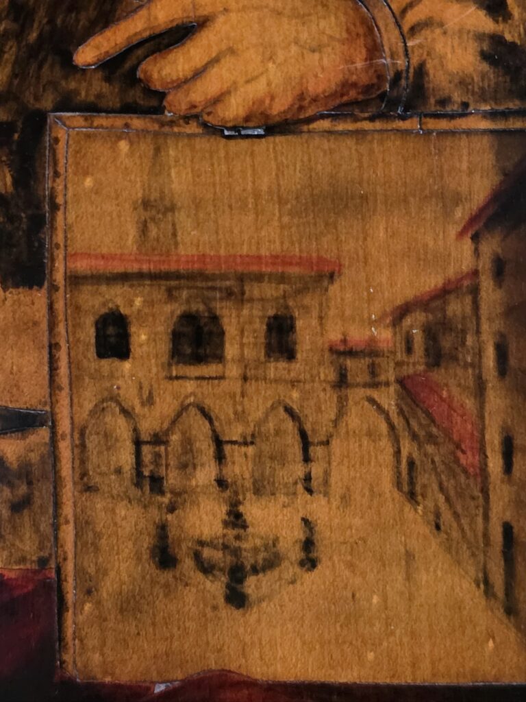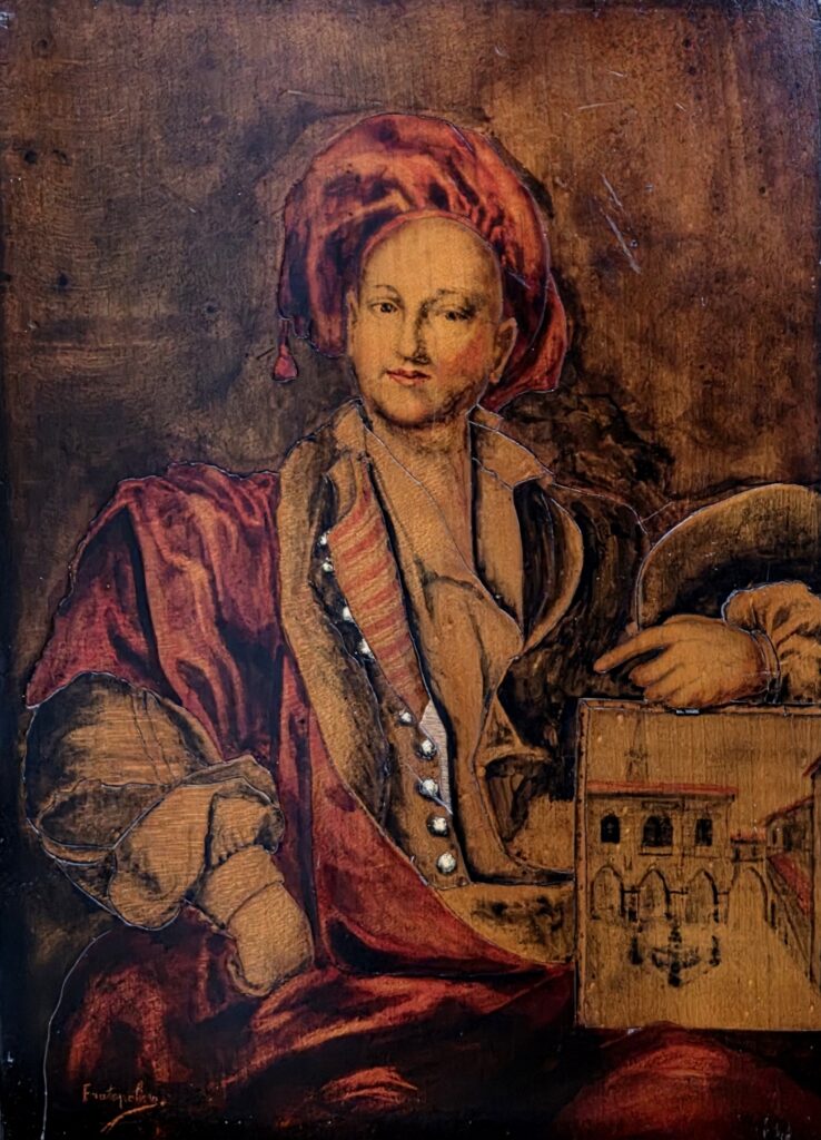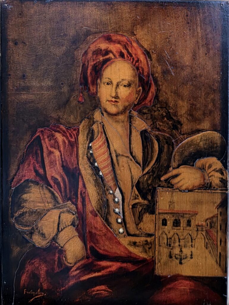 Giulio Bonaventura Masnaga detto Fratopolino (Bergamo 1852-1926).Cm.19 x 26 Misure: cm.19 x 26 Intarsio