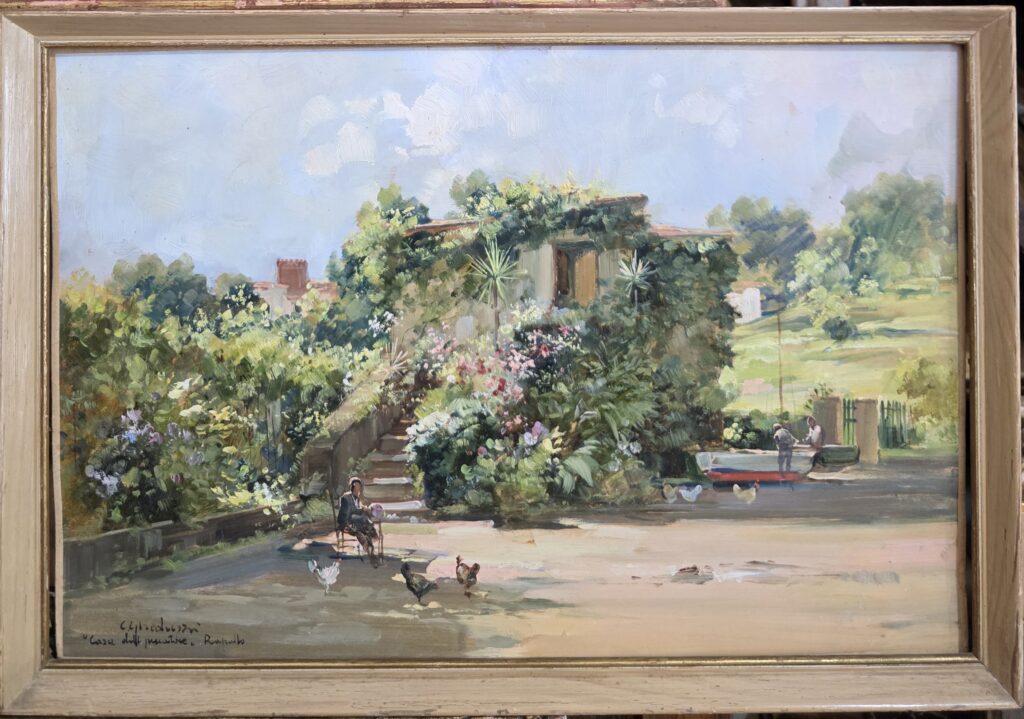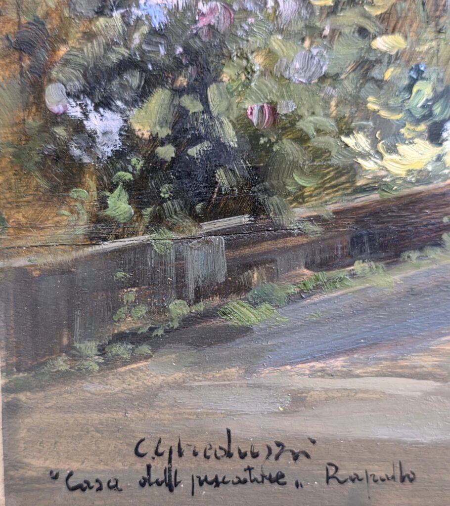 Cesare Gheduzzi(1894-1944).Olio su pannello.Cm.30 x 45 Misure: cm.30 x 45 senza cornice Misure: cm.33 x 48 con cornice Firma in basso a sinistra C.Gheduzzi Casa del pescatore, Rapallo