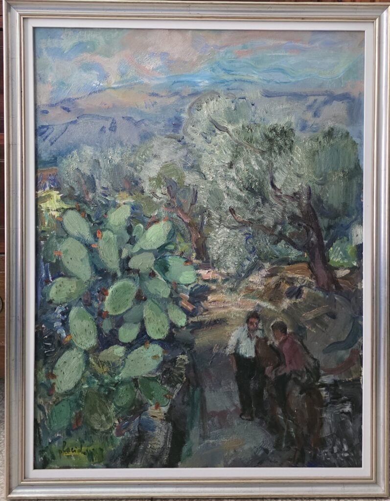 Errico Placido (1909-1983).Olio su tela.Olbia.Cm.62 x 82. Misure: cm.62 x 82 senza cornice Misure: cm.68 x 88 con cornice Olio su tela Firma in basso a sinistra Placido