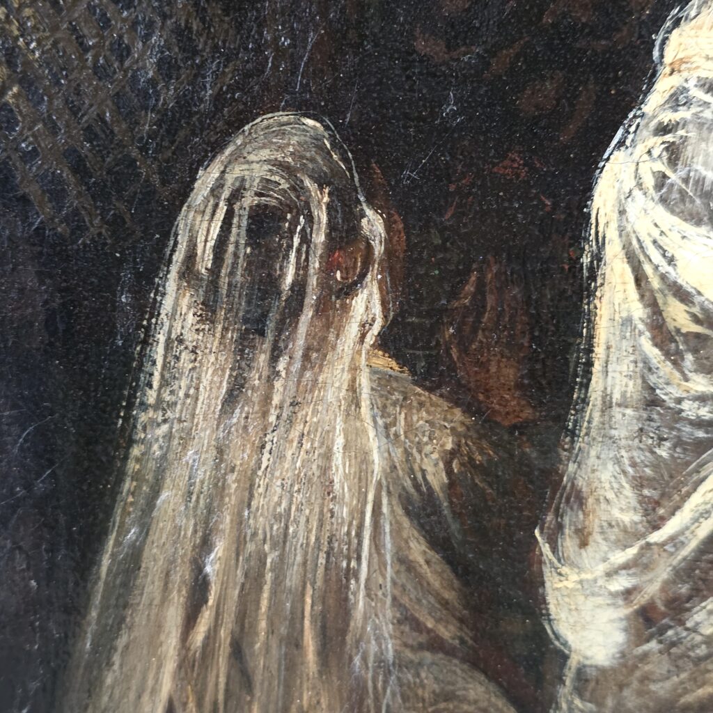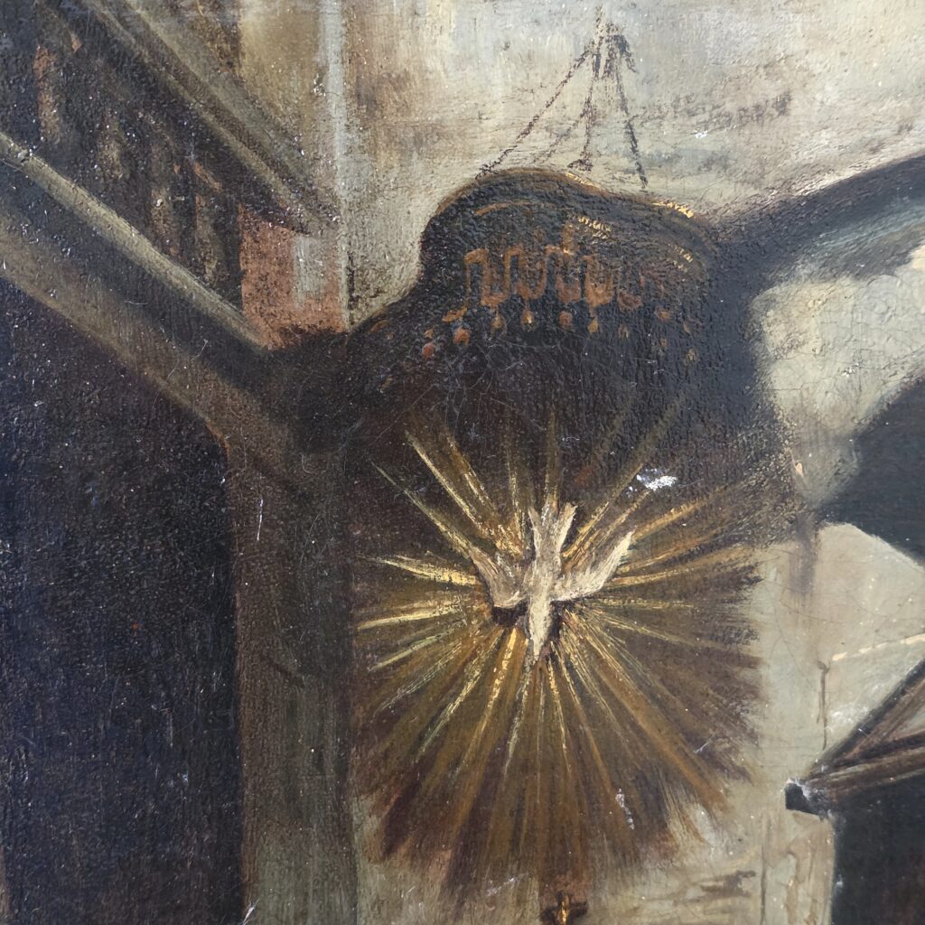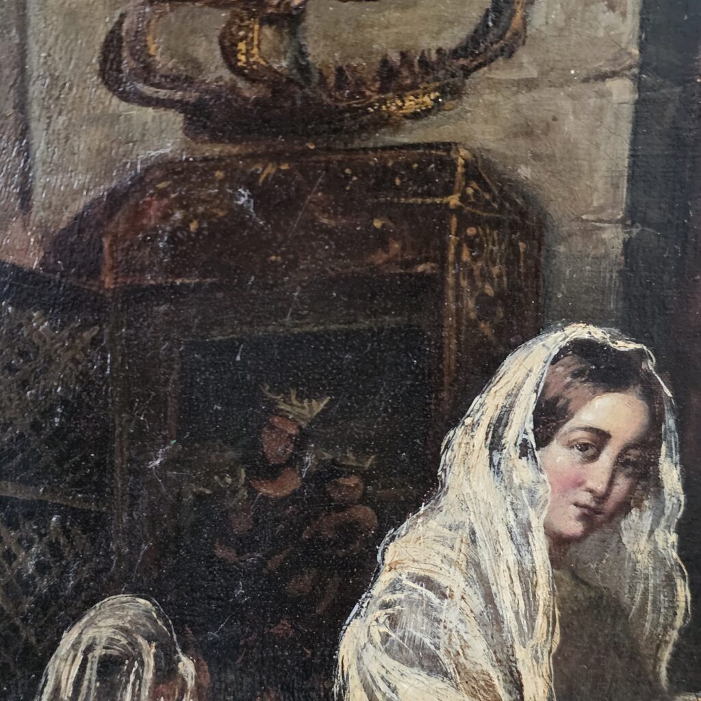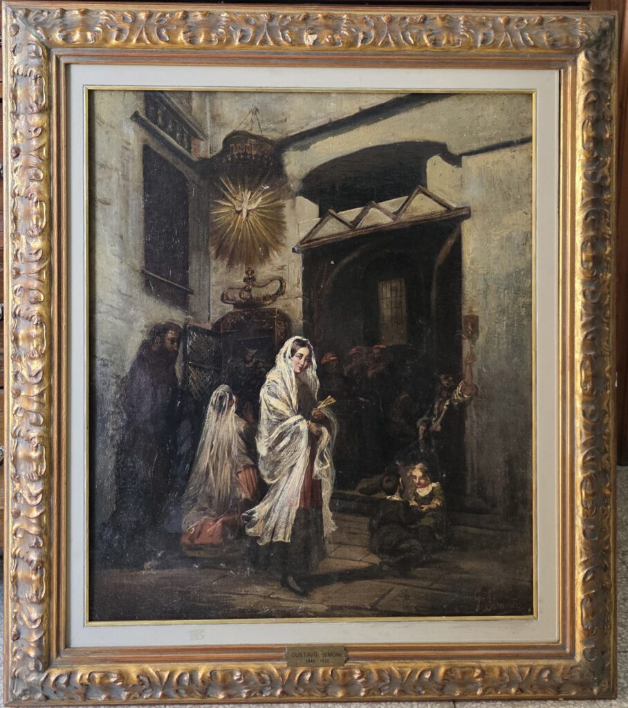 Gustavo Simoni (1845-1926).Sacro e profano.Olio su tela.Cm.62 x 75 Misure: cm.62 x 75 senza cornice Misure: cm.85 x 96 con cornice Olio su tela Sacro e profano. Firma in basso a destra G.Simoni