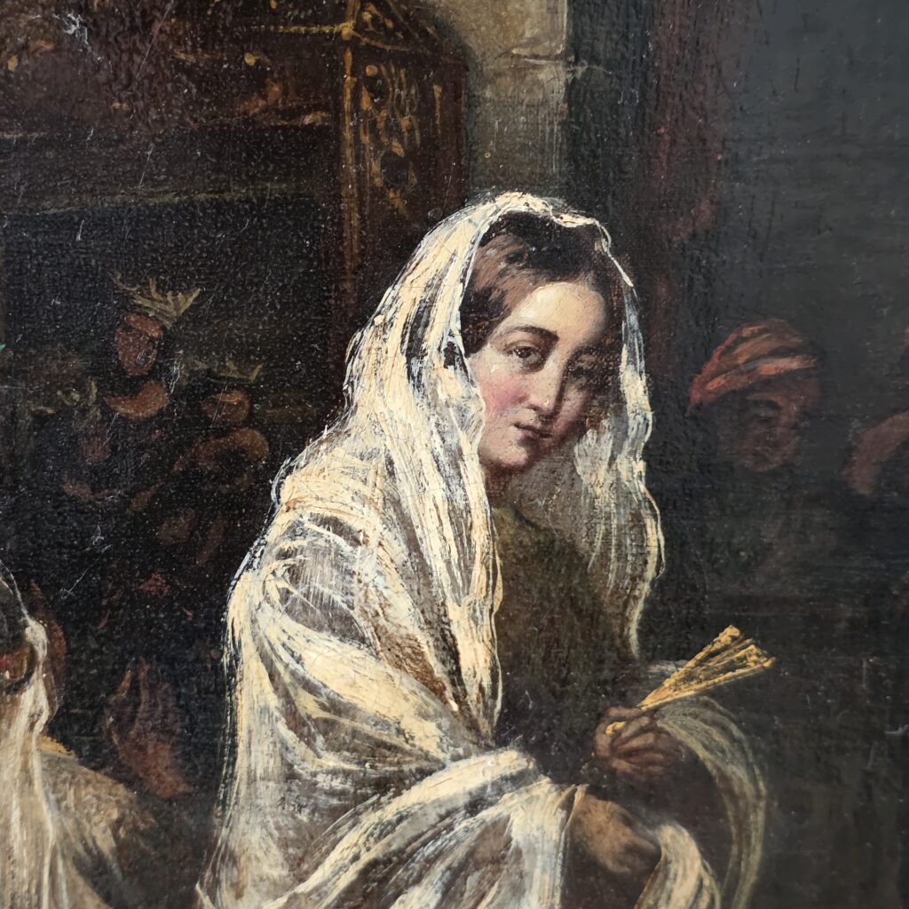 Gustavo Simoni (1845-1926).Sacro e profano.Olio su tela.Cm.62 x 75