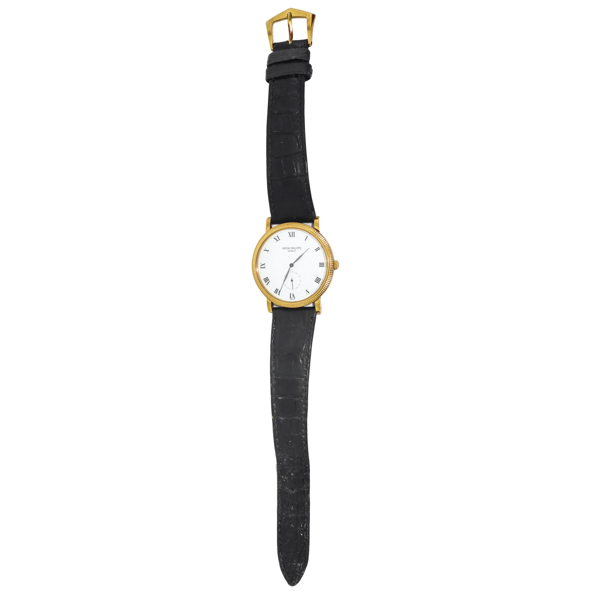 Patek Philippe & Co Geneve - Orologio Patek Philippe Calatrava con quadrante in oro giallo 18 kt quadrante mm 34 Cassa in oro giallo 18 kt, quadrante in ceramica bianca con numeri romani. Referenza: 3919J-001 Calibro:215