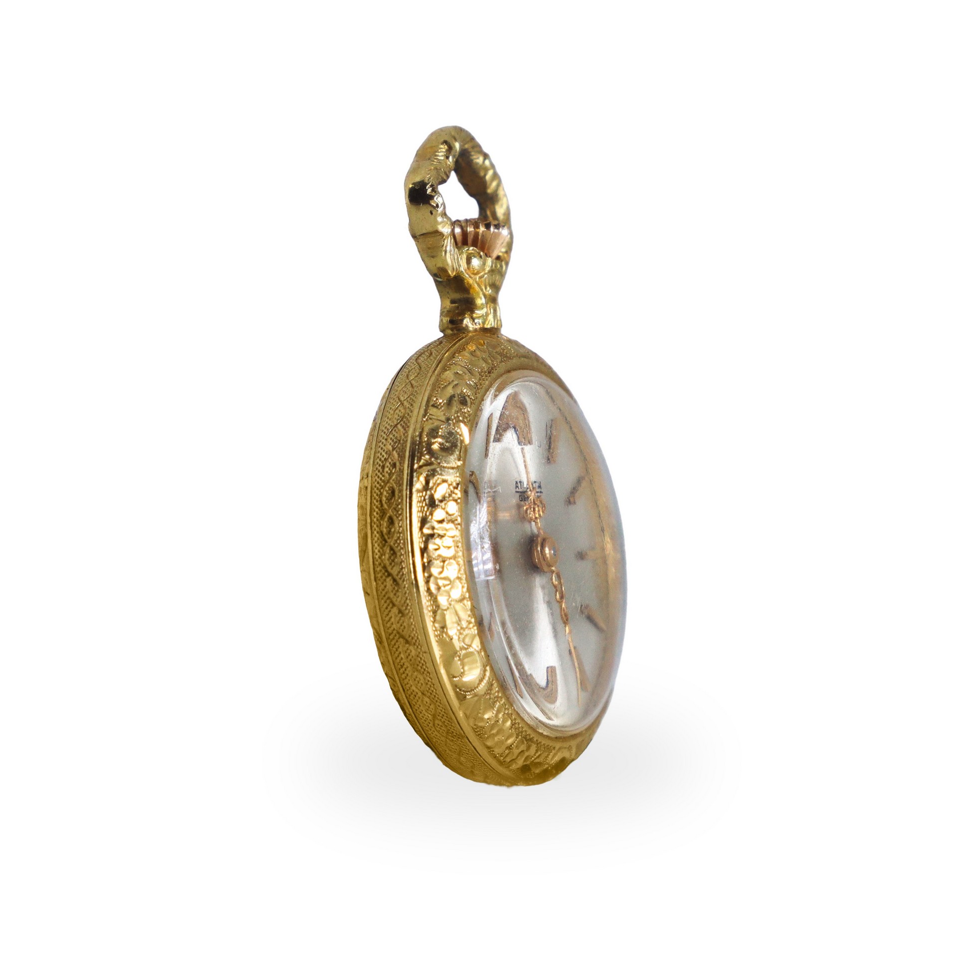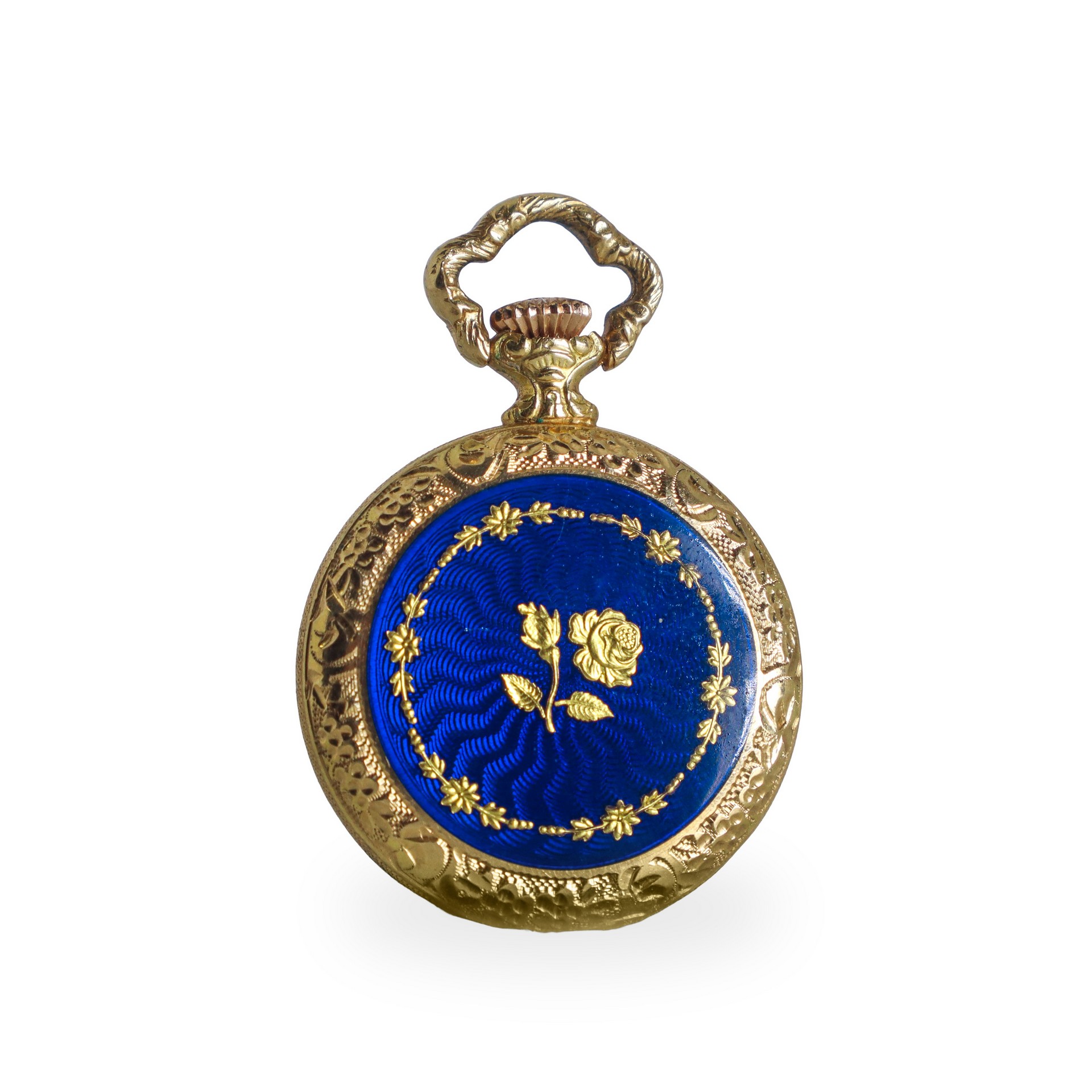 Orologio/pendentif dorato in oro giallo con smalti blu e decoro floreale dorato