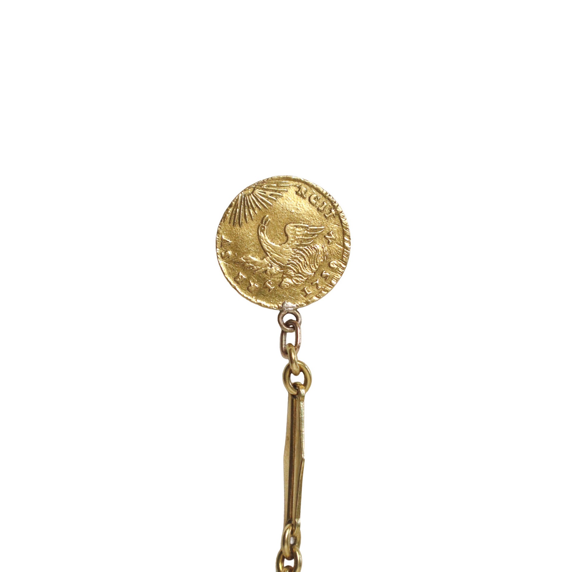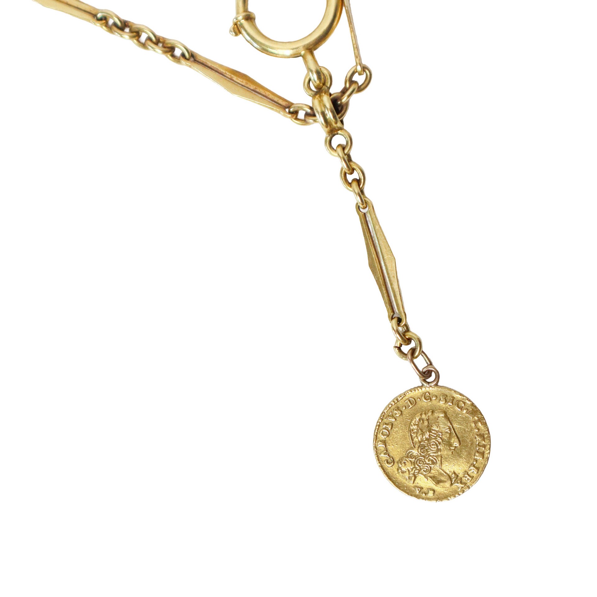 Catena d'orologio in oro giallo con all'estremità moneta di Carlo di Borbone (1734-1759)