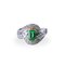 Anello in oro bianco con diamanti taglio brillante e baguette e smeraldo colombiano
