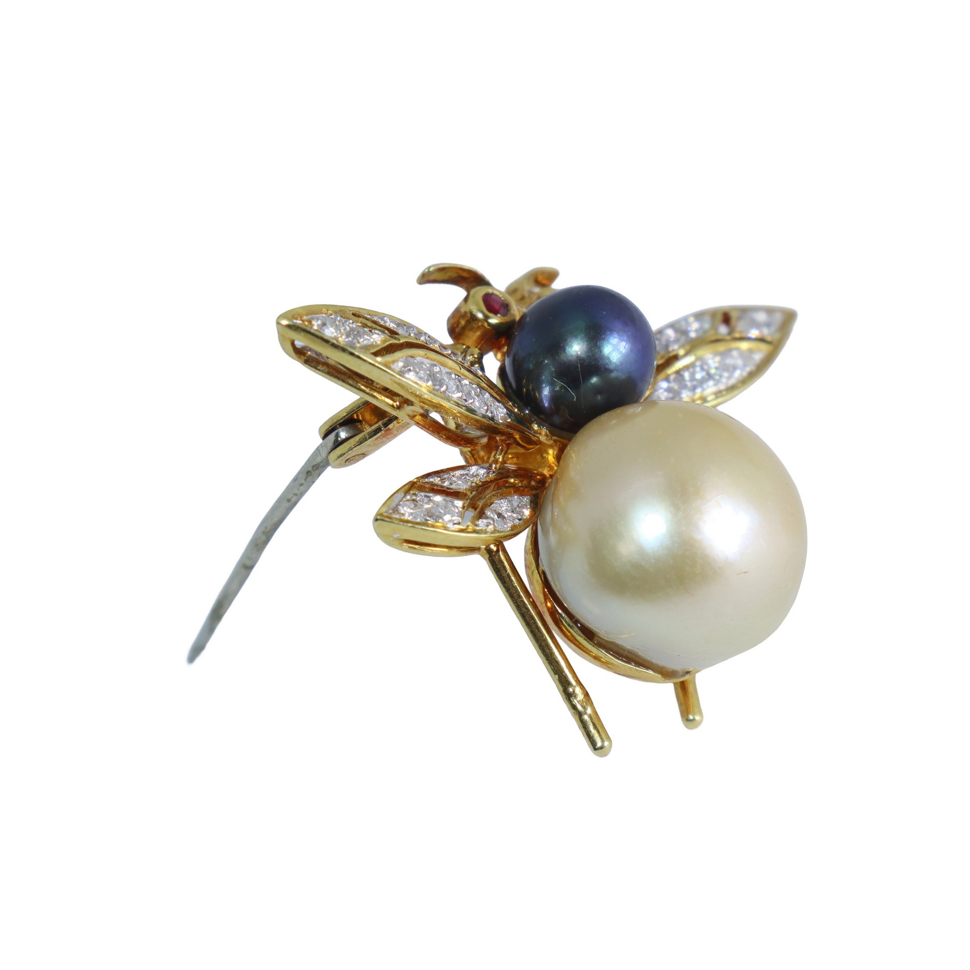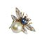 Spilla in oro 750, perle, diamanti e granati a forma di insetto