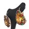 Orecchini a goccia in oro giallo 9 kt con quarzo centrale e cornice di pietre naturali intorno