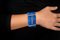 Bracciale a fascia in oro 585 (14 KT) con granati e pietre sulla susta e lungo le 3 bande di sostegno che intervallano le 7 fila di grani in pasta di zaffiro