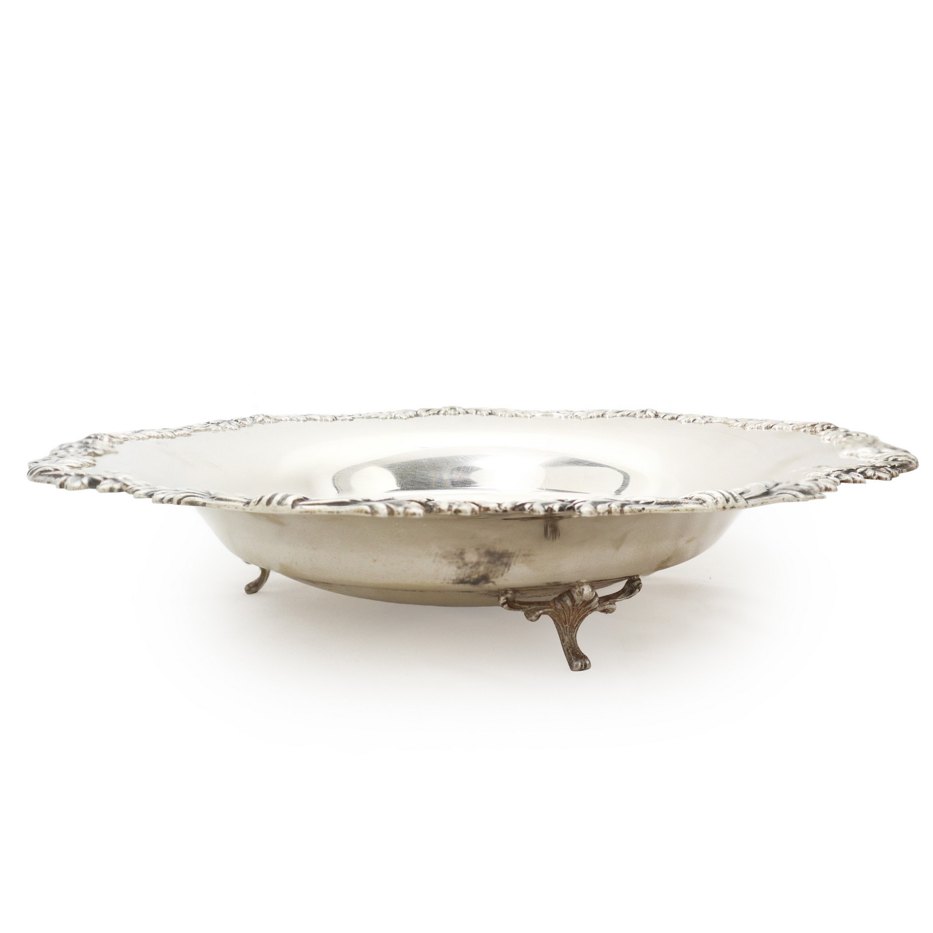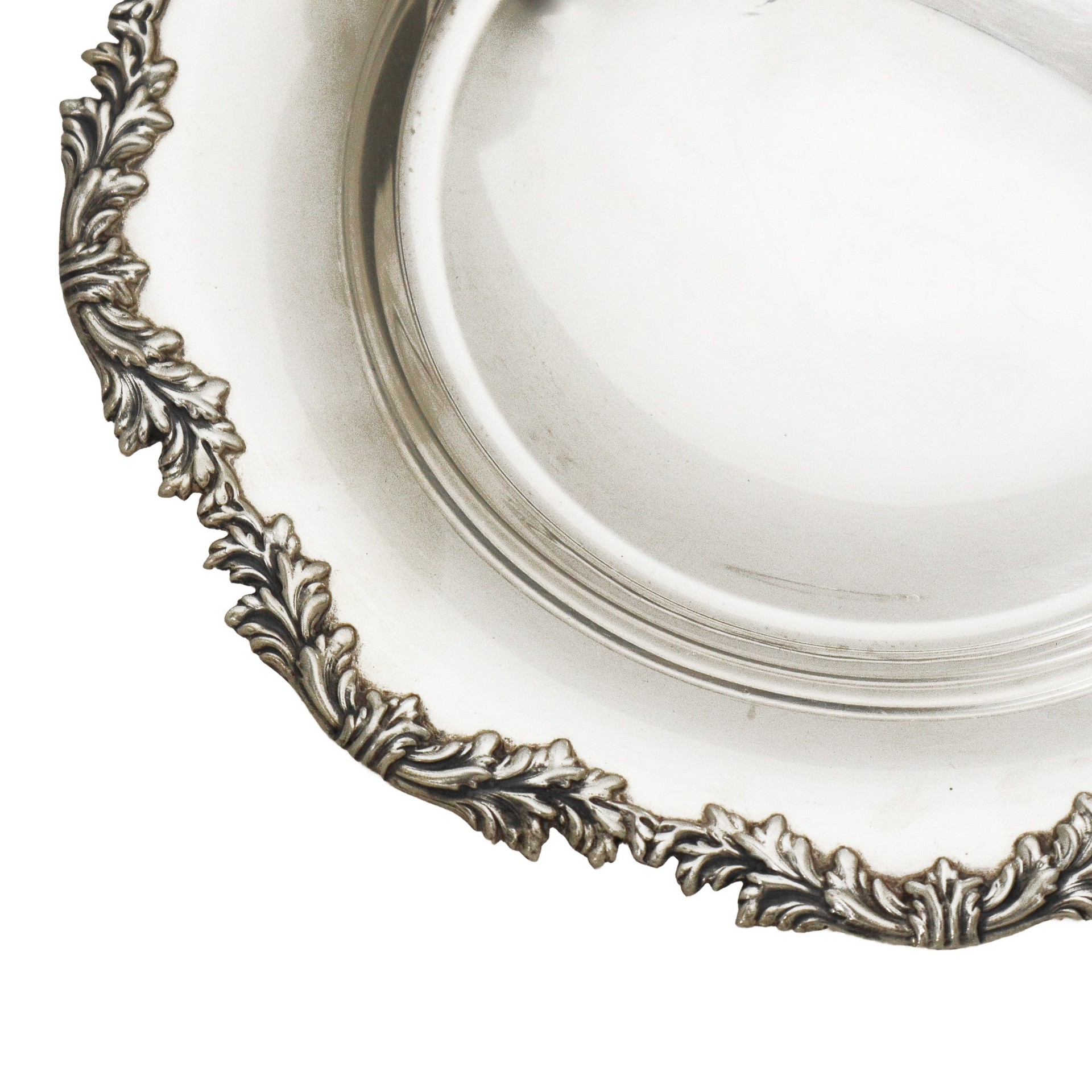 Alzata in argento 800 con bordo sbalzato a motivi fogliari