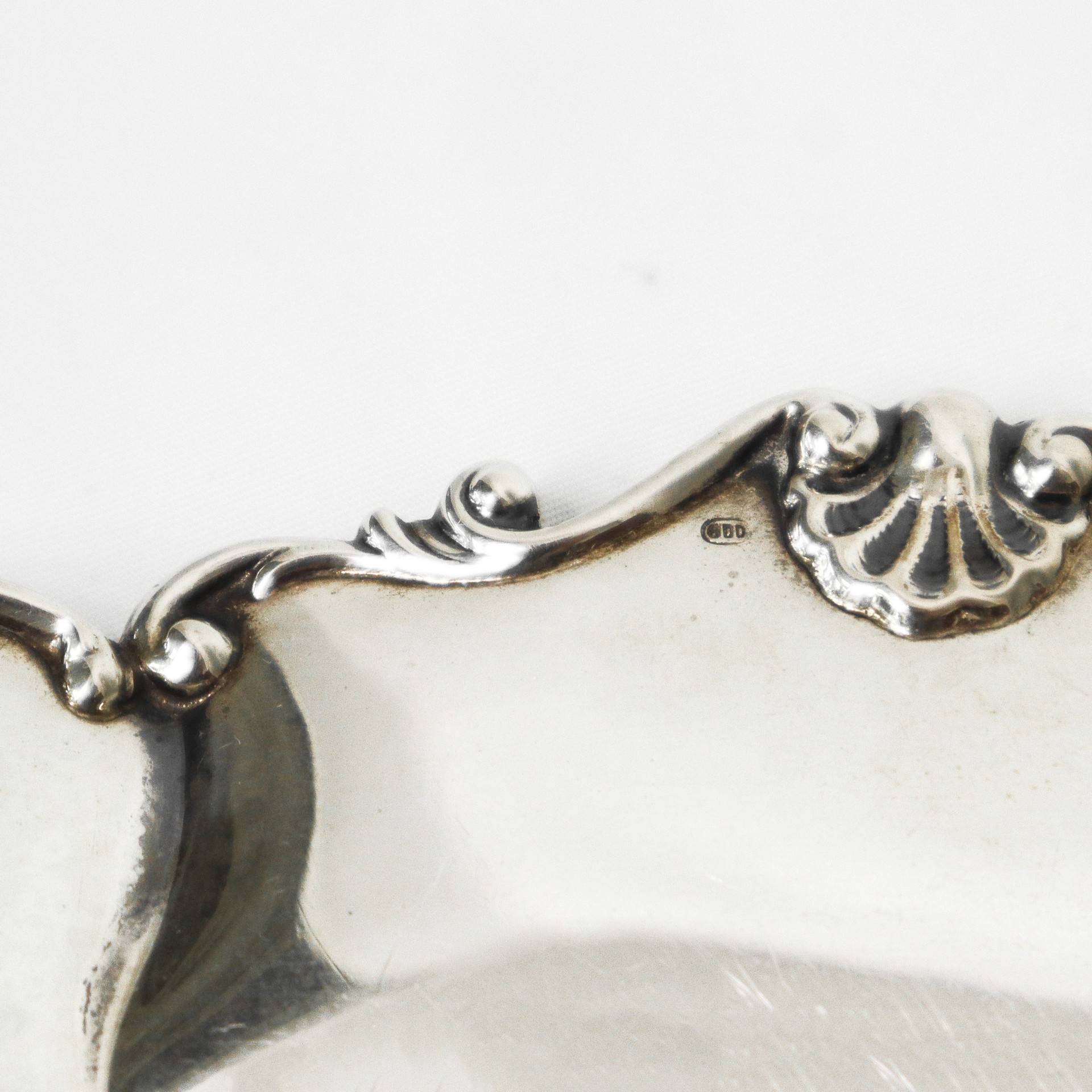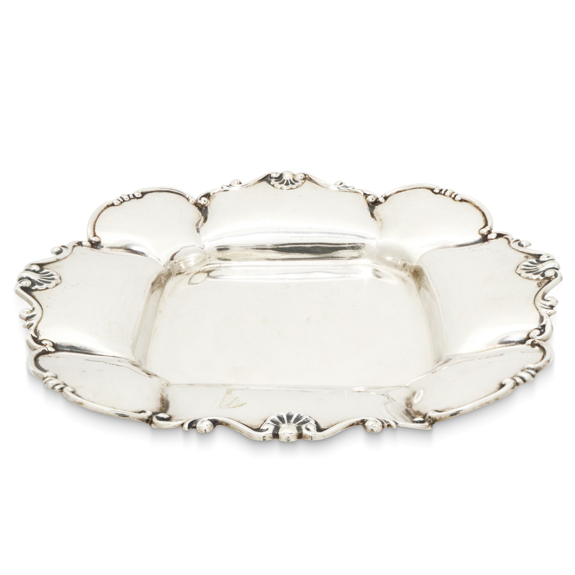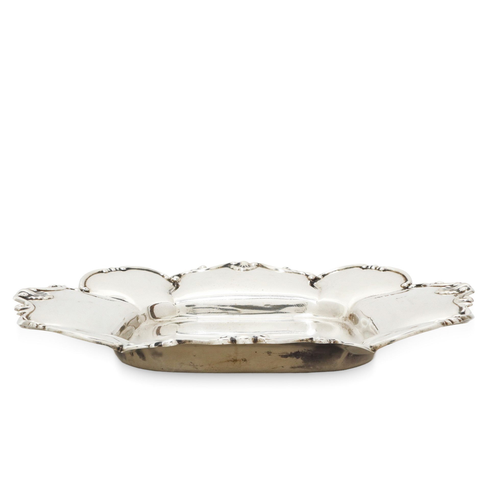Zuccheriera in argento 800 con piedi felini e svuotatasche in argento 800 con bordo smerlato in argento 800