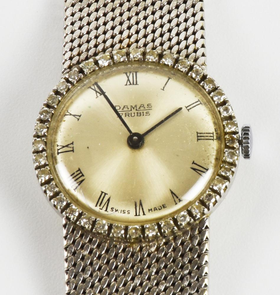OROLOGIO GIOIELLO DAMAS IN ORO BIANCO E DIAMANTI, SERIALE 132523, anni '60/70...
