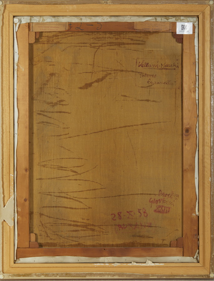VELLANI MARCHI MARIO (1895 - 1979) INTERNO BURANELLO. 1958. Olio su tela. Cm 61,00 x 81,50. monogramma e data