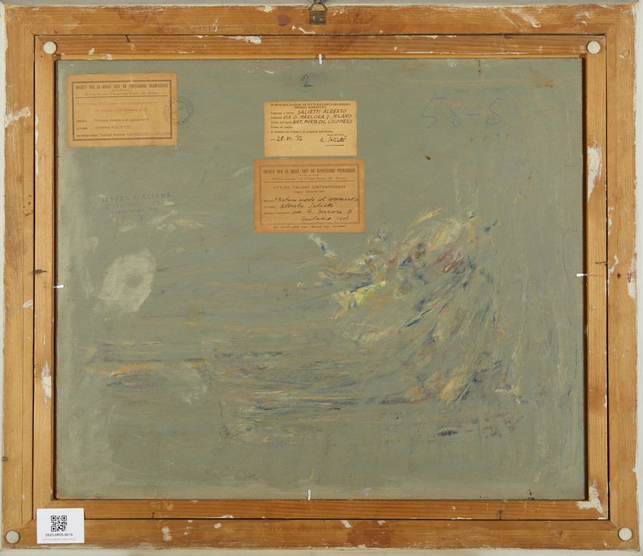 sul retro: etichetta e timbro Società per le belle arti ed esposizione permanente, Milano ed etichetta IV mostra nazionale di pittura contemporanea premio Marzotto, Milano