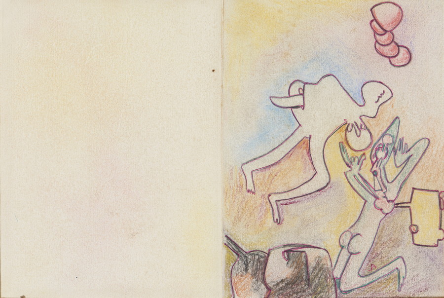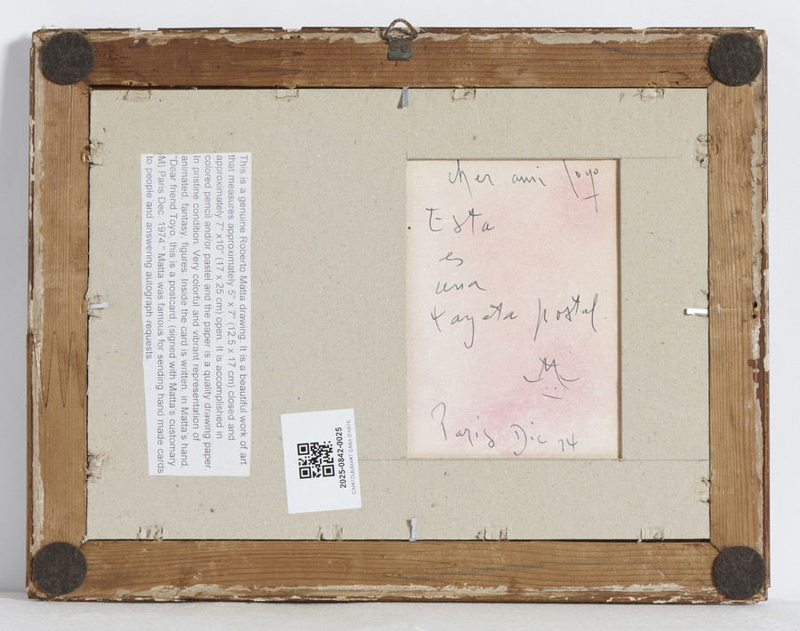 MATTA ROBERTO SEBASTIÁN ANTONIO (1911 - 2002) SENZA TITOLO. Tecnica mista e pastelli su carta. Cm 24,70 x 17,00. sul retro: firma e dedica ad personam . Cornice presente