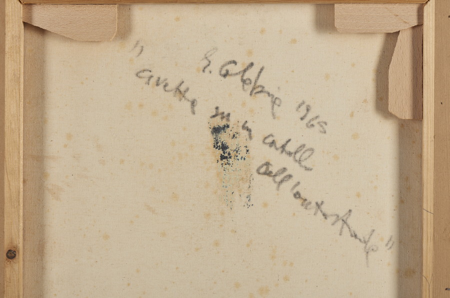 CALABRIA ENNIO (n. 1937) GUFO. 1965. Olio su tela. Cm 43,50 x 52,50. firma e data