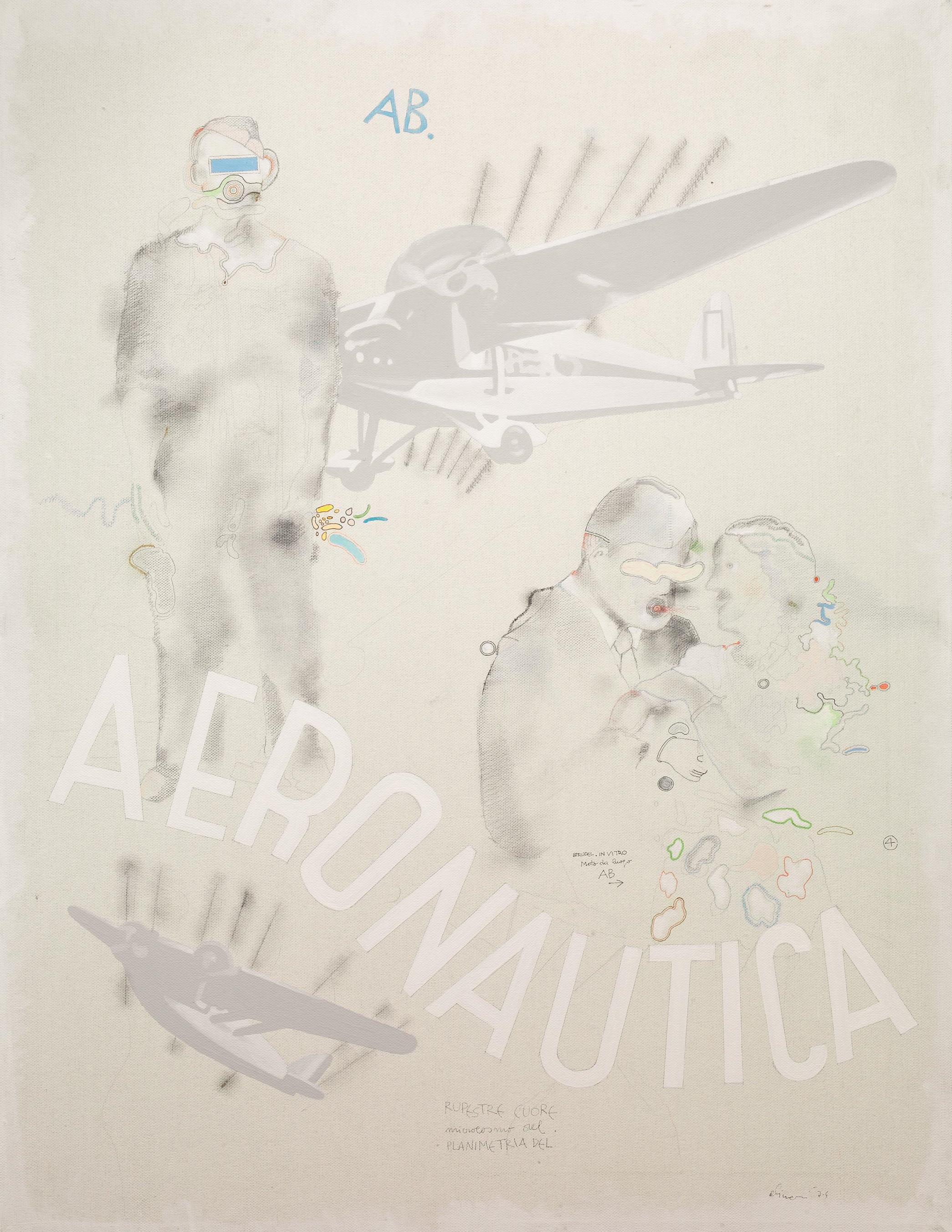 Luca Alinari(Firenze 1943)AERONAUTICAolio e acrilico su tela, cm 90x70firmato...