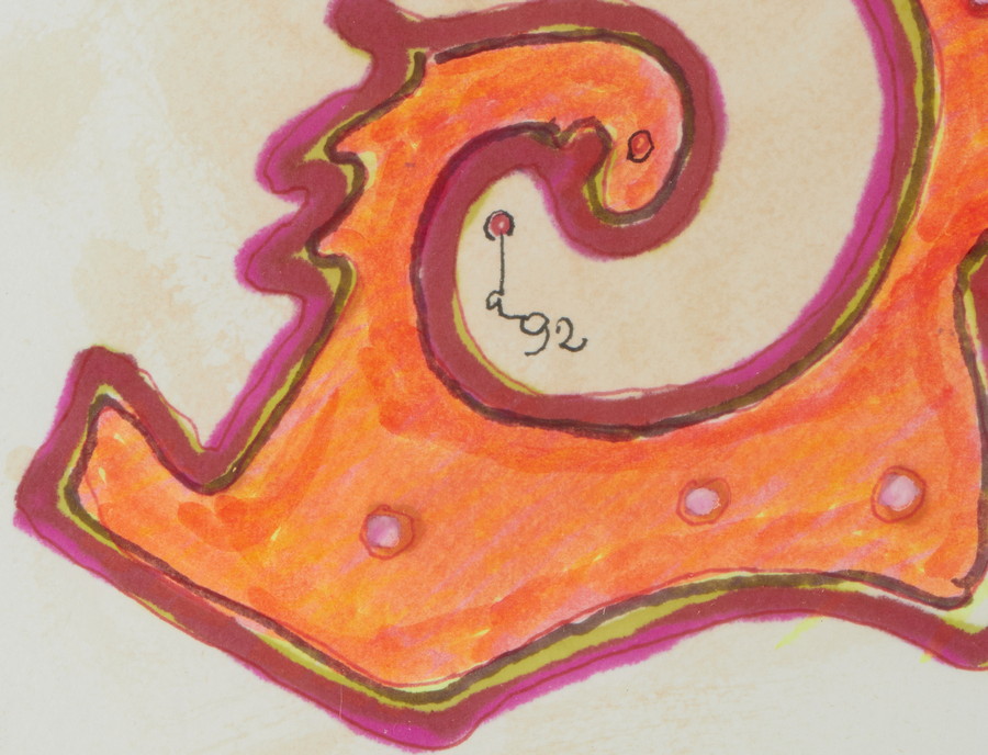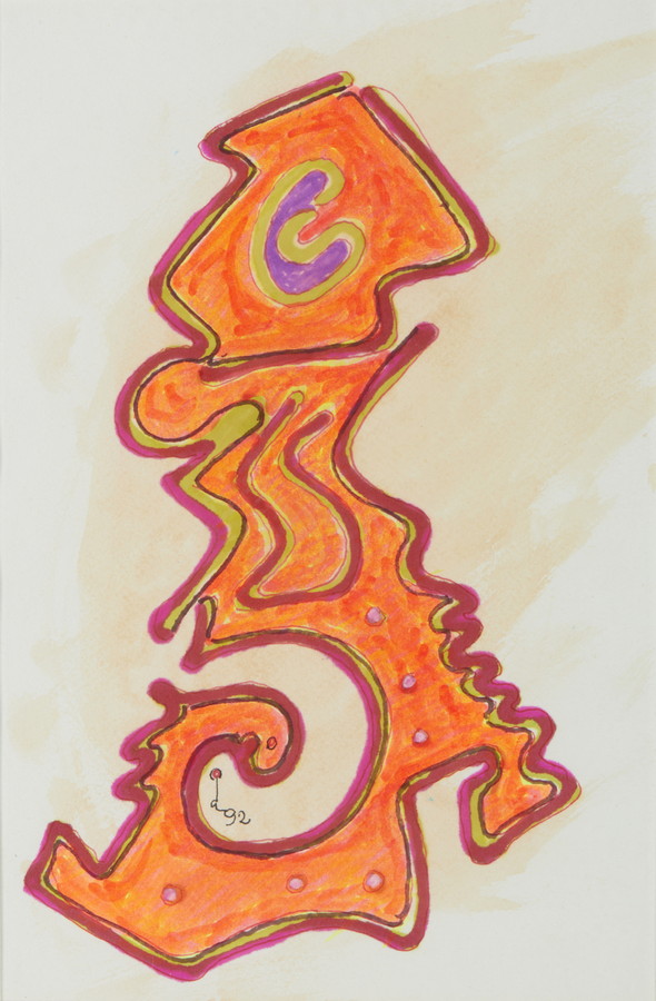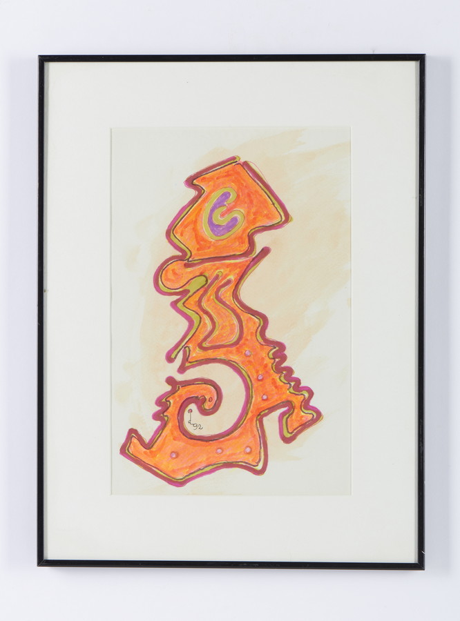 DORFLES GILLO (1910 - 2018) SENZA TITOLO . 1992. Pennarello e acquarello su cartoncino. Cm 21,00 x 29,50. firma