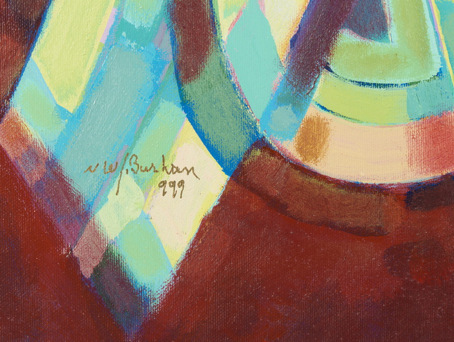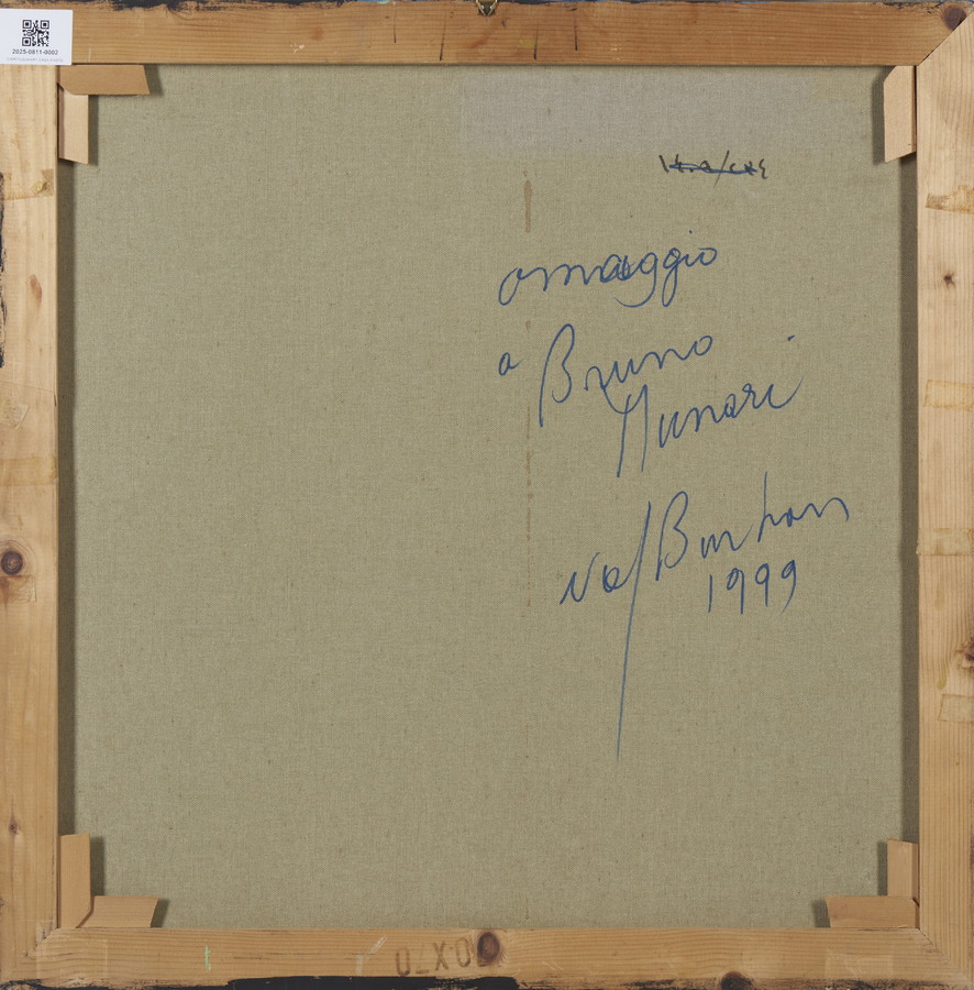BURHAN SAMI (n. 1929) OMAGGIO A BRUNO MUNARI. 1999. olio e tecnica mista su tela. Cm 69,50 x 70,00. firma e data