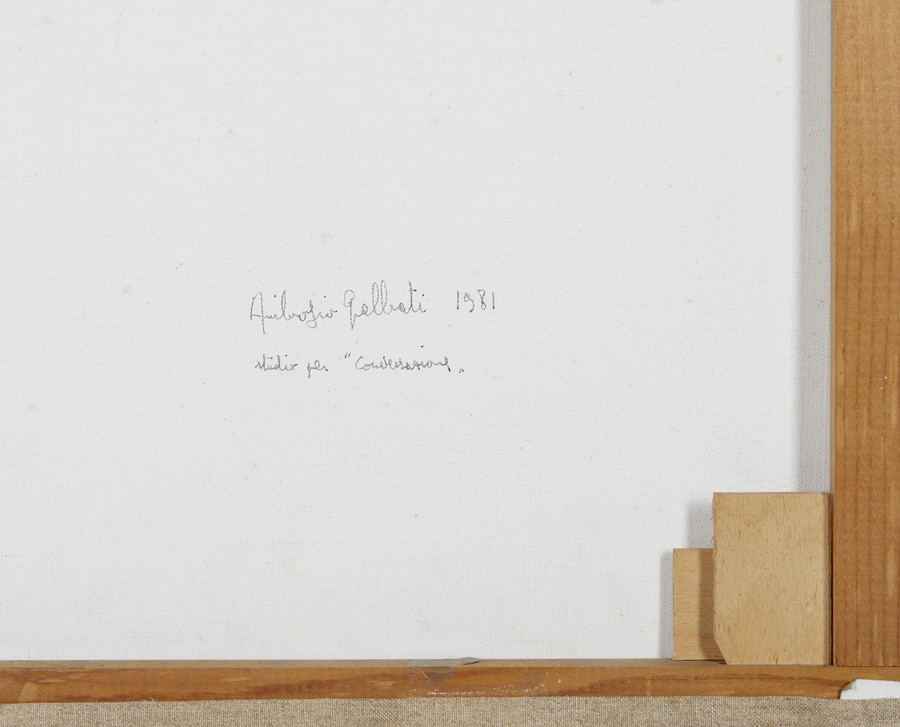 GALBIATI AMBROGIO STUDIO PER COMPOSIZIONE. 1981. Tecnica mista su tela. Cm 50,00 x 80,00 x 2,50. sul retro: firma, data, titolo