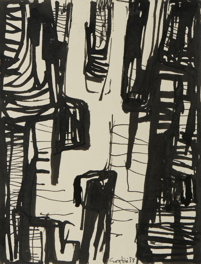 NATIVI GUALTIERO (1921 - 1999) SENZA TITOLO. 1958. China su carta. Cm 12,00 x 16,00. firma e data