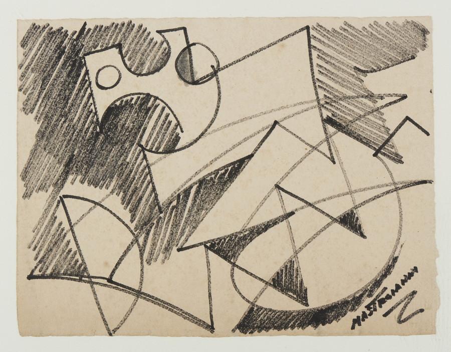 MASTROIANNI UMBERTO (1910 - 1998) SCOMPOSIZIONE FUTURISTA . Penna su carta. Cm 33,00 x 25,50. firma