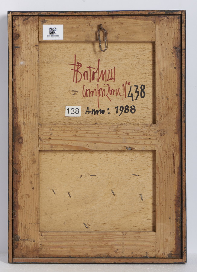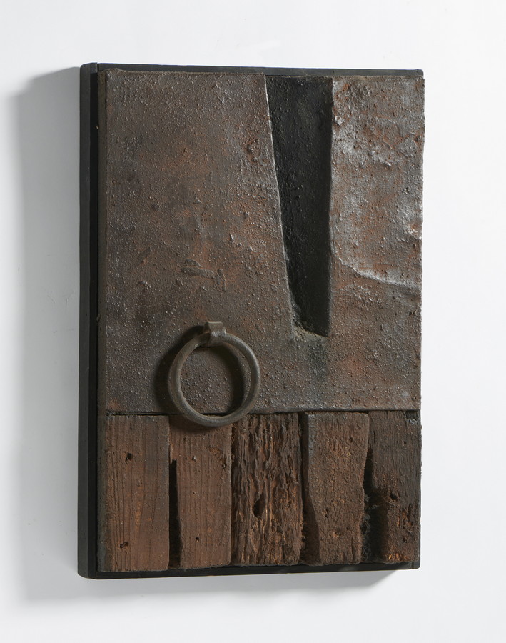 BORTOLUZZI FERRUCCIO (1920 - 2007) COMPOSIZIONE N. 438. 1988. Ferro, legno e terre refrattarie. Cm 43,50 x 62,50. sul retro: firma, titolo e data