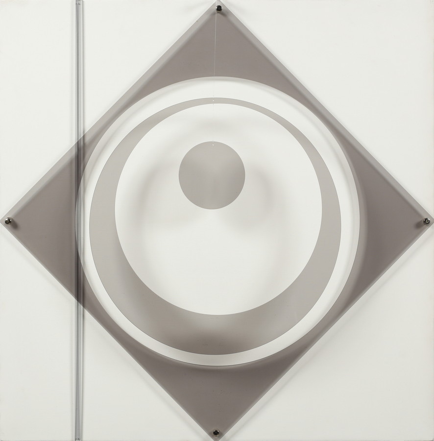 CAMPESAN SARA (n. 1924) MOBIL QUADRATO. 1967. Legno e plexiglass. Cm 80,00 x 80,00. sul retro: titolo, firma e data