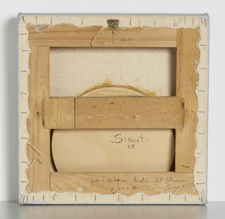 SIMETI TURI (1929 - 2021) UN TONDO GRIGIO. 1988. acrilico su tela. Cm 30,00 x 31,00. sul retro: doppia firma, doppia data e titolo