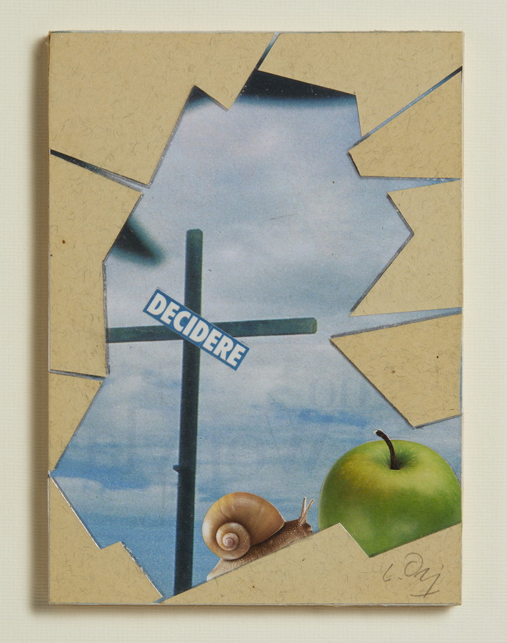 ORI LUCIANO (1928 - 2007) VETRO INFRANTO. 2004. Collage su compensato. Cm 13,00 x 18,20. firma